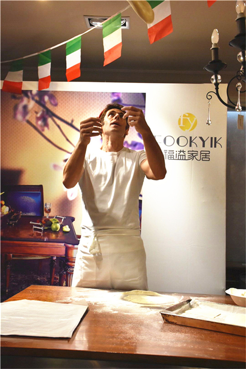 意大利人喜好奢华绚丽的装饰风格,喜欢品尝精致诱人的美酒佳肴,拥有丰富多彩的娱乐方式,这种生活艺术历经千年的传承至今仍熠熠夺目。在活动现场马希莫耐心地教大家制作正宗的意式pizza,并带大家品尝了维罗纳特产中最高级的红酒-AMARONE和红酒炖饭,接着,他阐述了意大利家居装饰风格的特点,以及维罗纳特有的风俗习惯,特色的建筑等。最后马希莫更详细介绍了大家最关心的福溢家居2016年意大利风系列新品鉴赏,引来现场观众阵阵掌声。