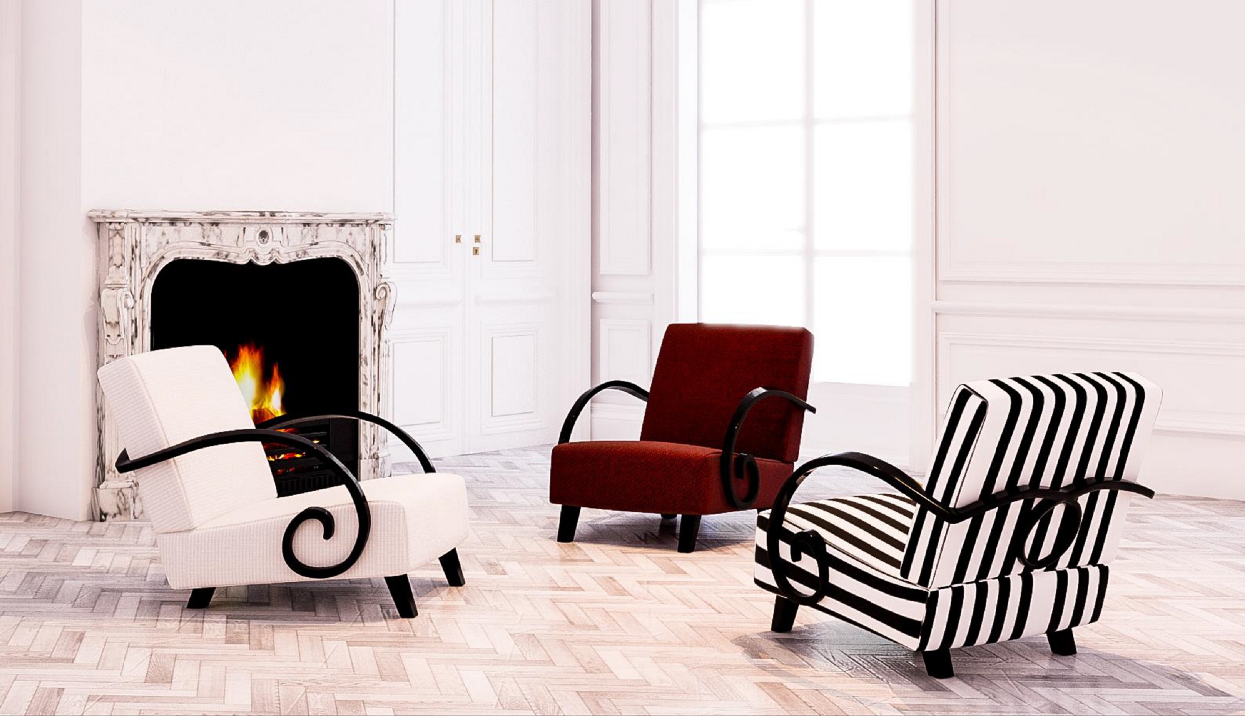 白色、酒红或条纹,都适合现代或经典的室内设计。设计还原了1930年代的外观,黑色的木质扶手打造出弧形线条,给人一种女性化和别致的感觉。