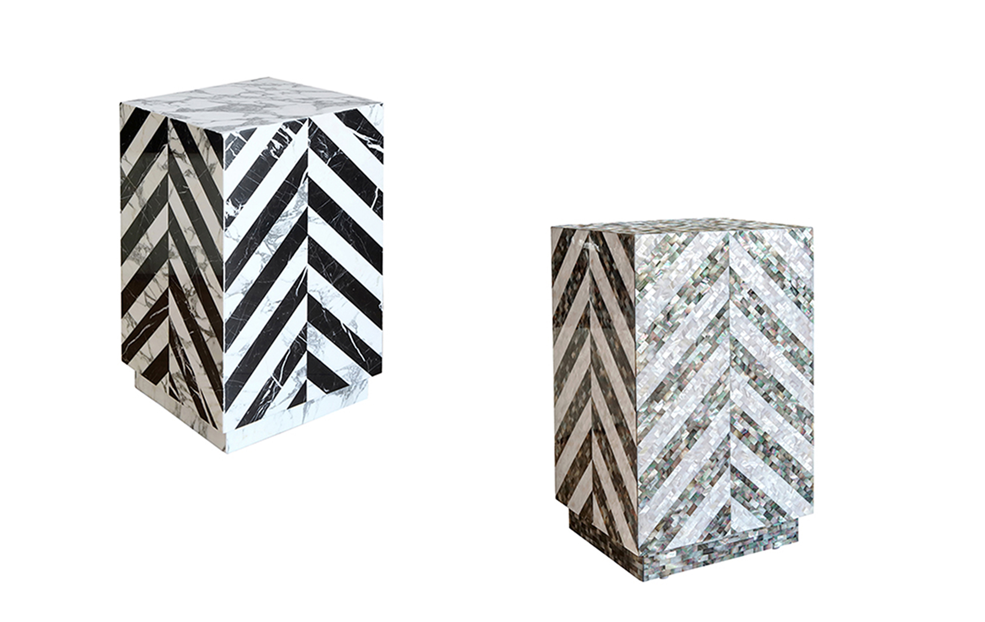 灯台的灵感来自古罗马建筑柱,灯台上刚毅的形状能让人联想到凯撒大帝的个性和原则。它们有非常生动的效果,无论是大理石还是贝壳,都有着精致的外观,给人一种极致家的感觉。