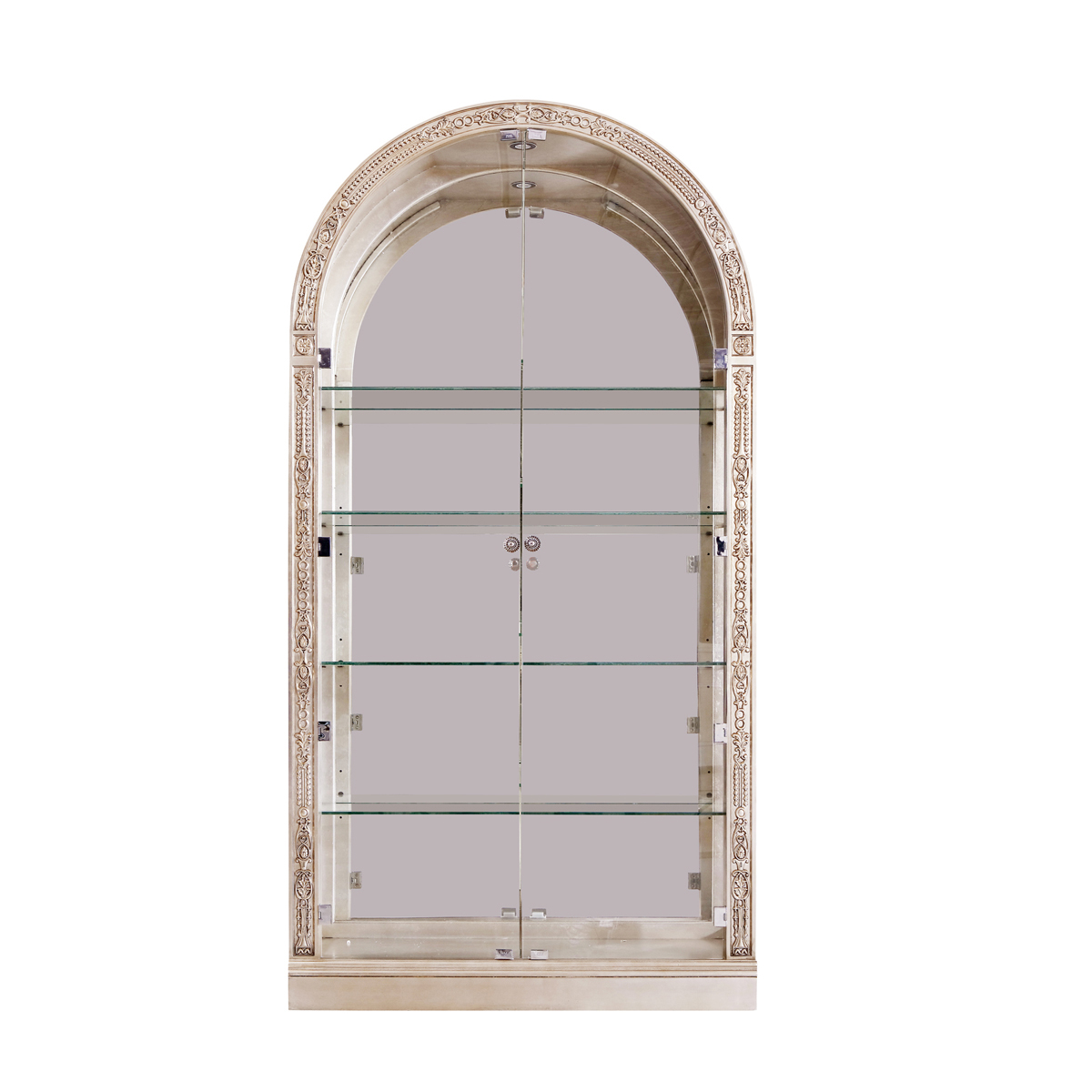 * 手工雕刻的工艺细节结实的连接技术18道以上的多步骤油漆工艺; * 门内有四块玻璃层板,背板处装有背镜,使内部的光线更通亮;