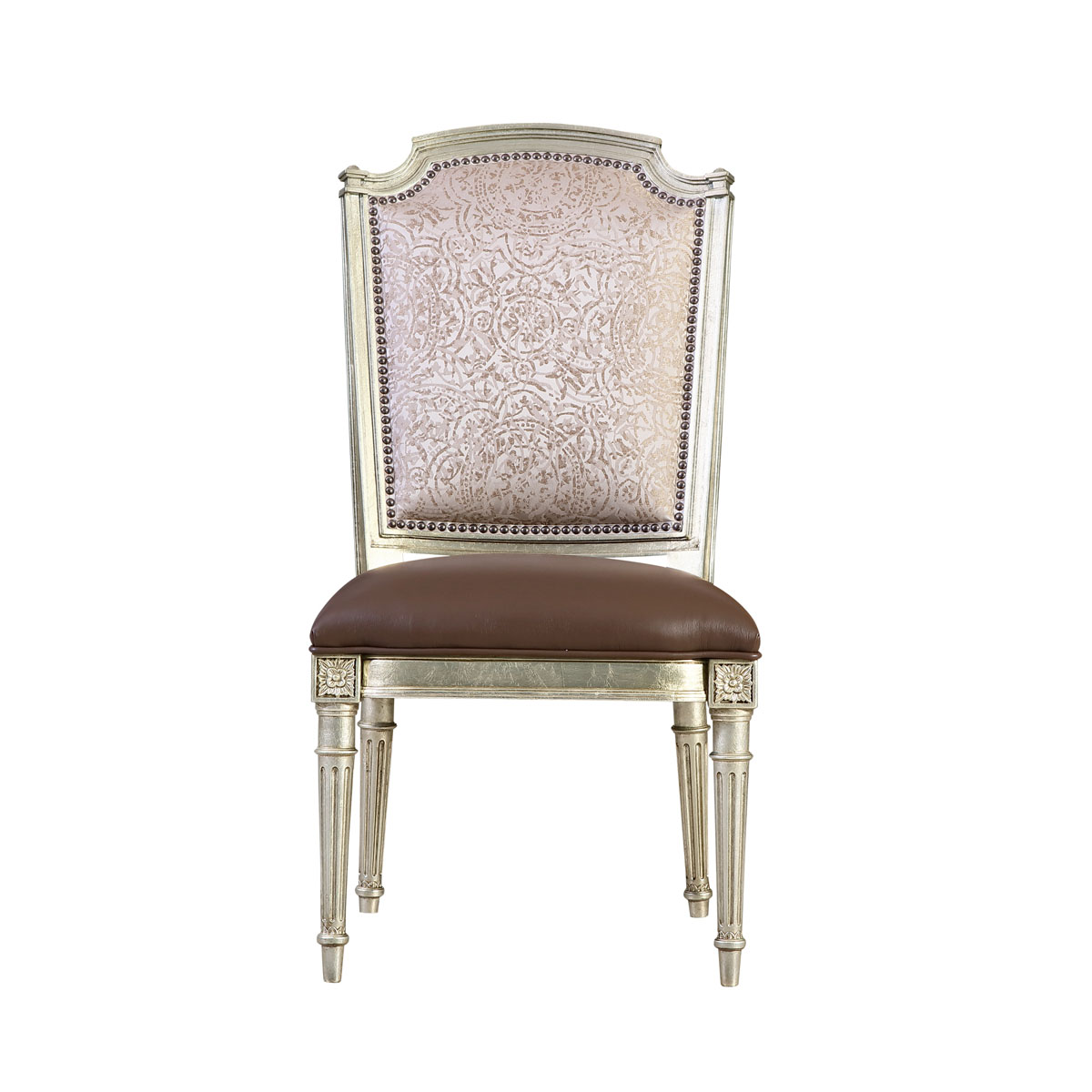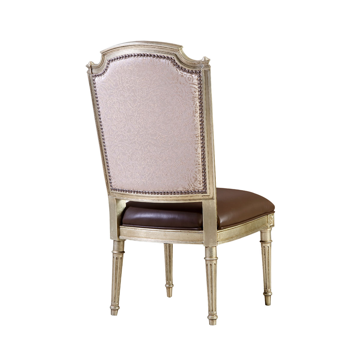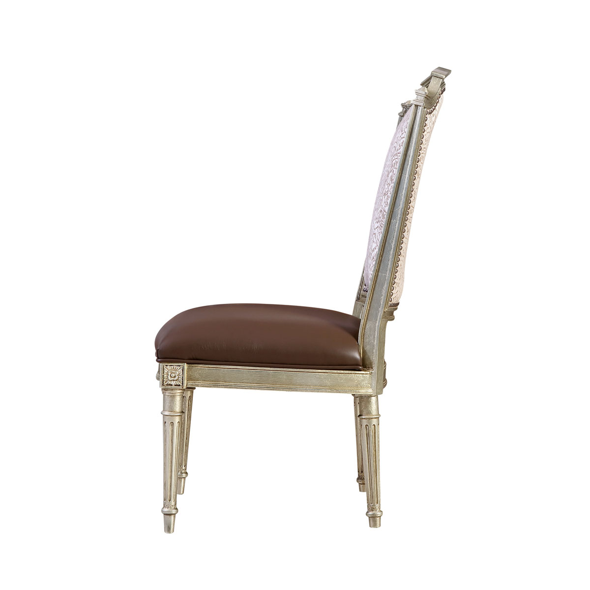 赫普尔怀特风格的盾形背搭配车织雕刻腿比例优美,造型优雅,兼有古典式的华丽和路易十六式的纤巧。描金工艺与淡紫色软装布艺的交织,是自然的色彩密码与权利至上的象征。