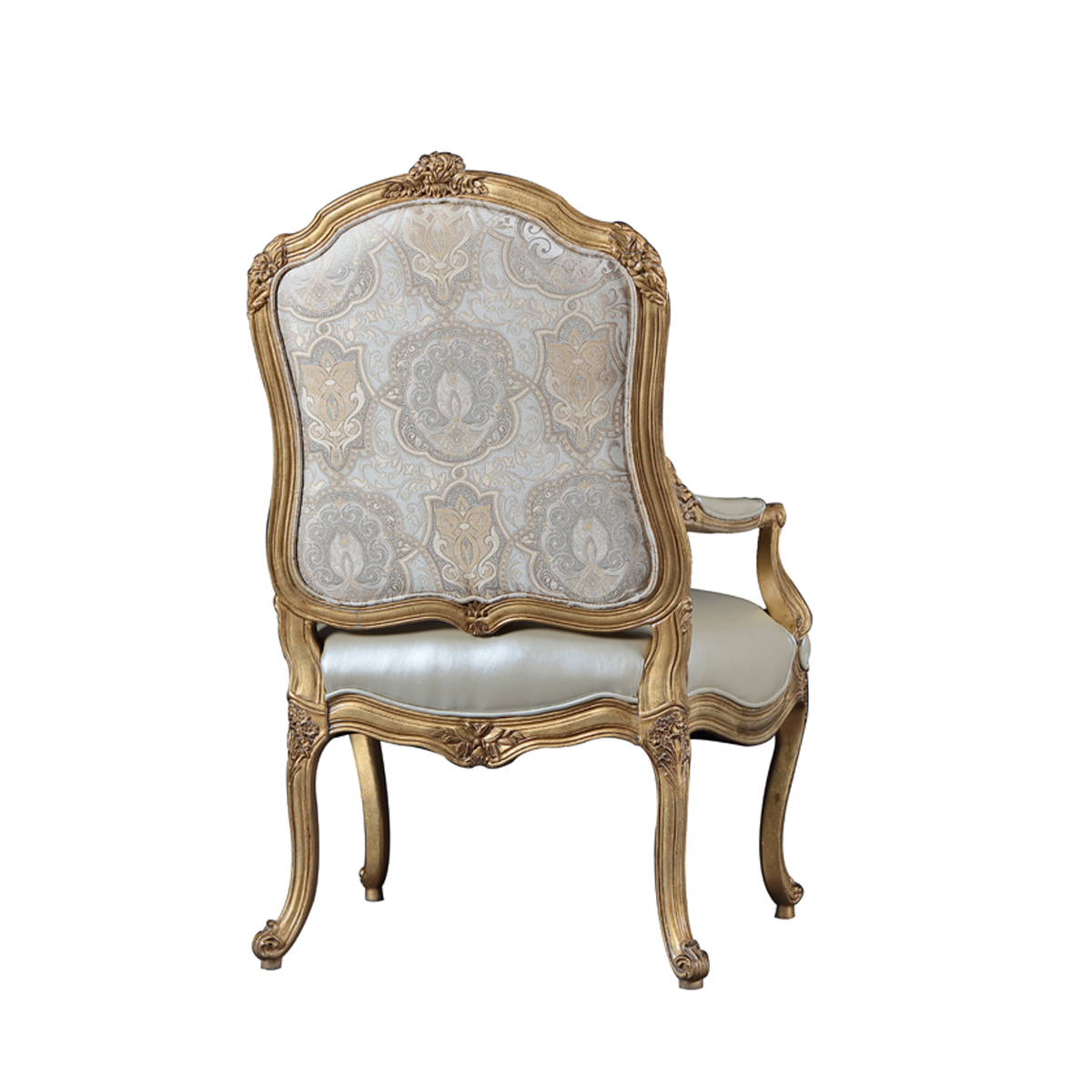 参考18世纪法国路易十五时期经典的法式 Bergère 椅设计 ﹣多以婀娜的 Camelback Silhouette(驼峰轮廓)和外露的木框架表达;并配上细致的卷叶雕刻工艺、触感舒适的布艺、法式经典弯脚和金箔描金工艺,释放法式浪漫情怀。