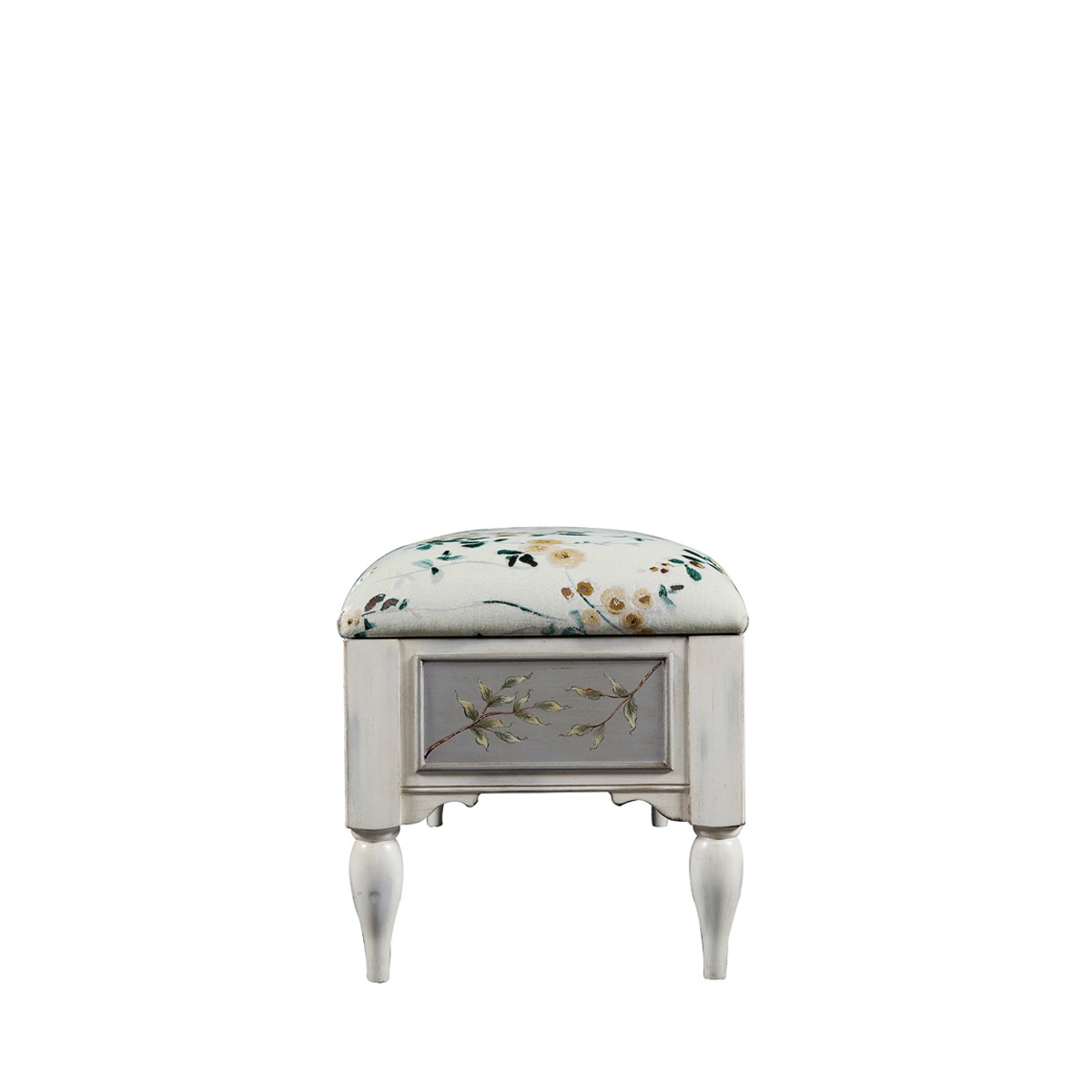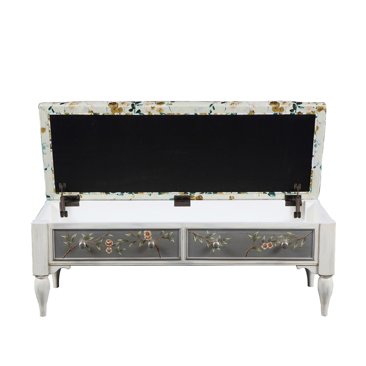 花叶,藤蔓伸展蔓延,灵鸟轻憩其上,典雅的银底手绘栩栩如生,将清新淡雅的田园风味融进家居装饰中,为家增添浓郁又鲜活的自然表情,两个抽屉设计,存取便利,美观又有实用功能。