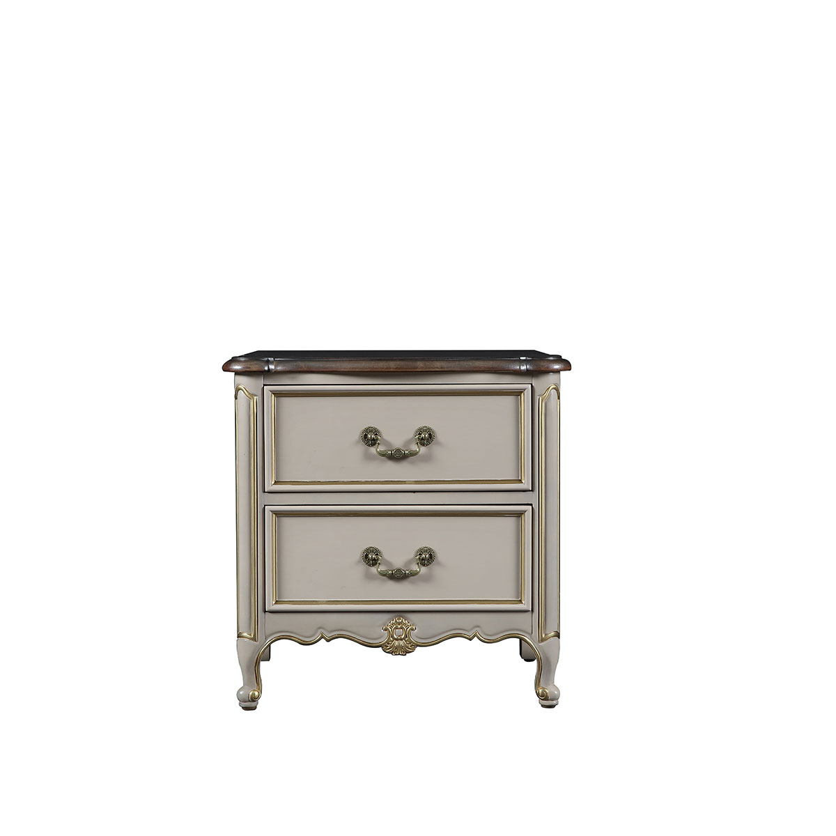 * 手工拼花藤蔓效果,用多种上等木皮拼制而成 * 二个储物斗,底部采用经典的硬木实木滑轨; * 脚脚底部装有可调脚钉;