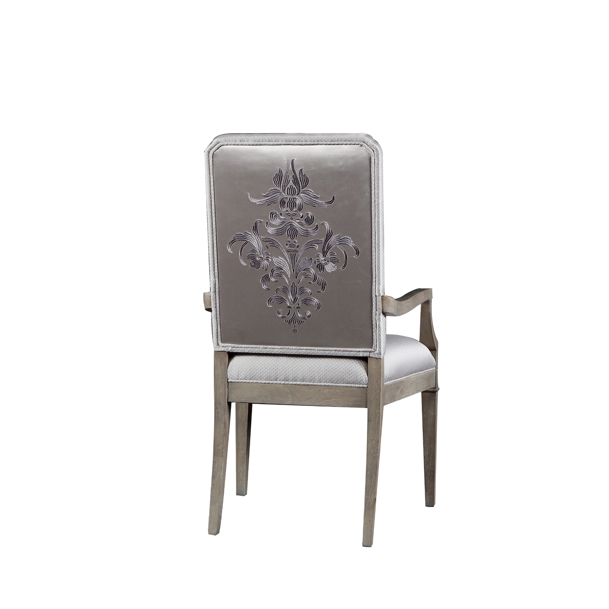 新古典主义弯刀腿和一体成形的外框设计,充满艺术美感的同时让优雅与舒适共存。源自于“文艺复兴”时期的大马士革花化身餐椅独特图腾,花纹形态多变,样式雍容华贵,方形靠背彰显米兰时尚的大气洒脱。