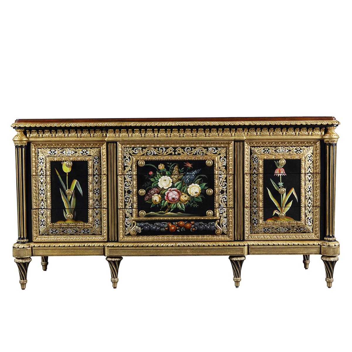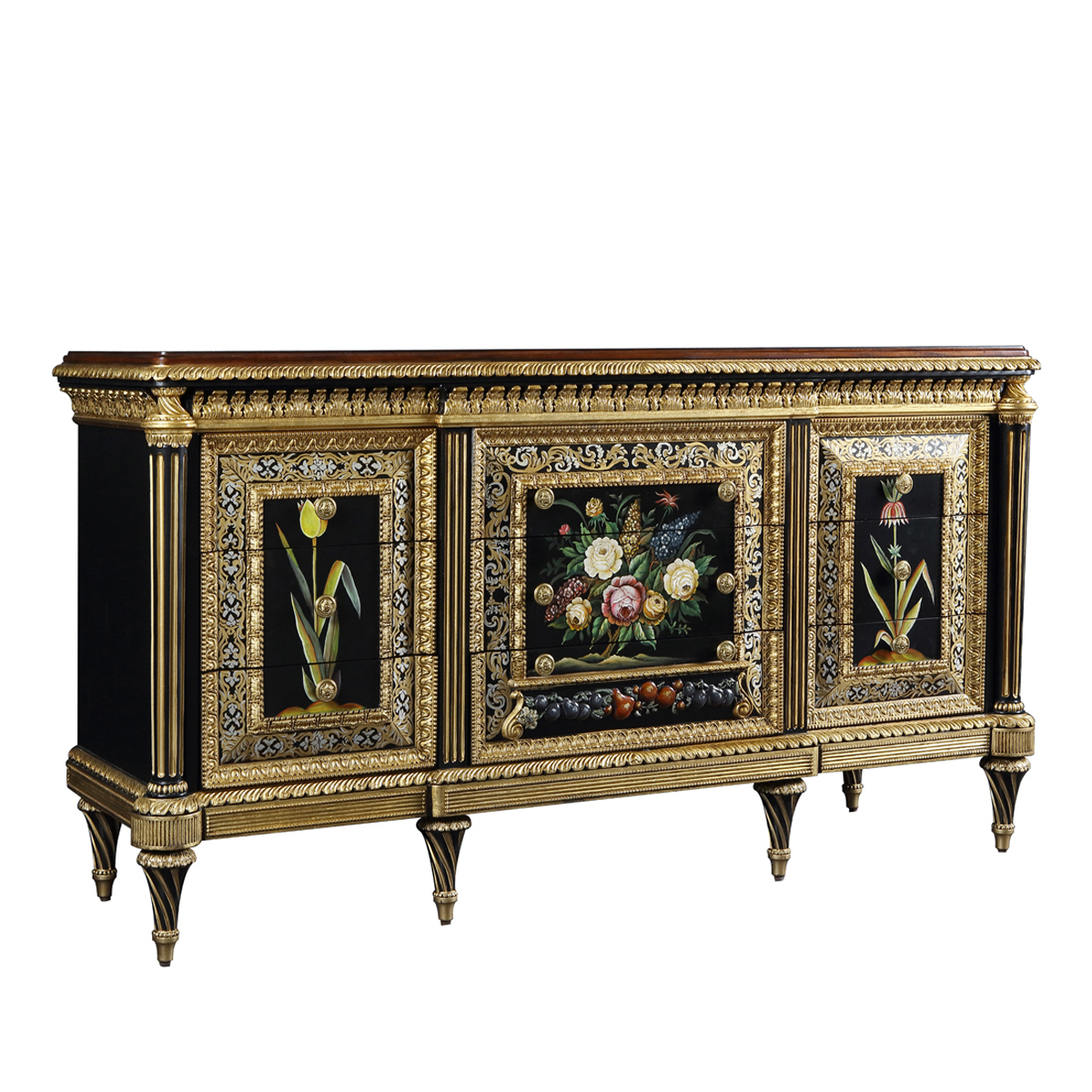 以英国温莎堡中的新古典风格长柜为意念,设计出古典复刻版。绝美的植物彩绘和花朵蔓藤雕刻,扑捉温莎城堡的浅谷繁花;英国皇室球盟会(中国)·网页登录完美呈现,形象逼真地描绘了贵族家居生活美学的真谛。