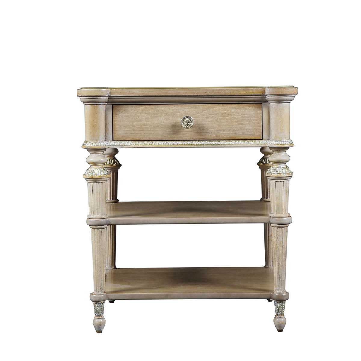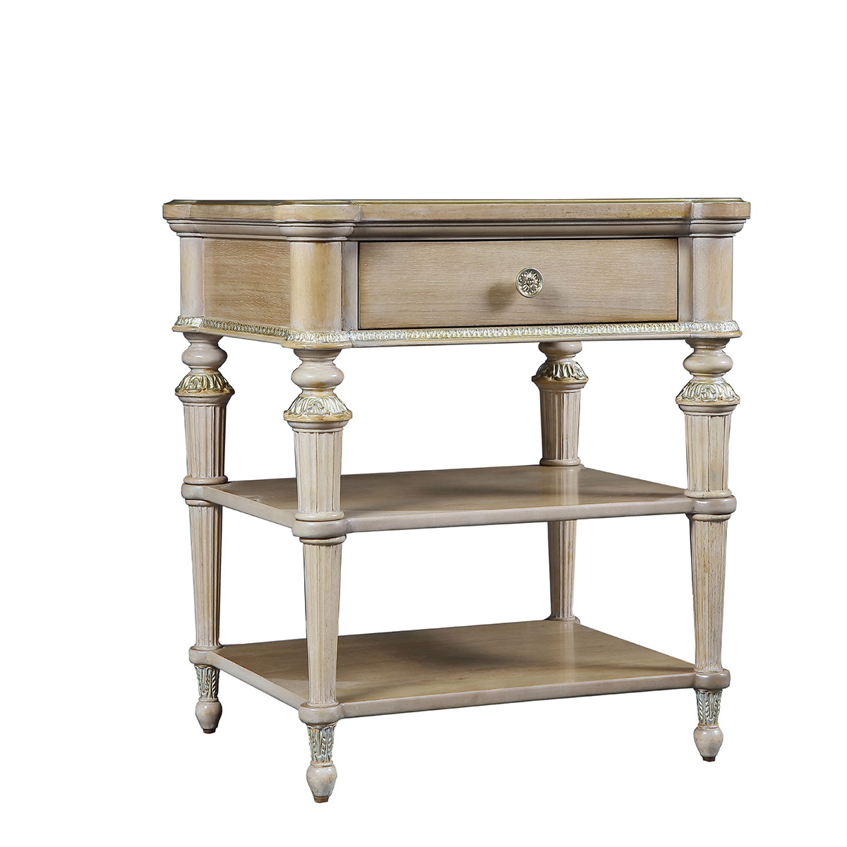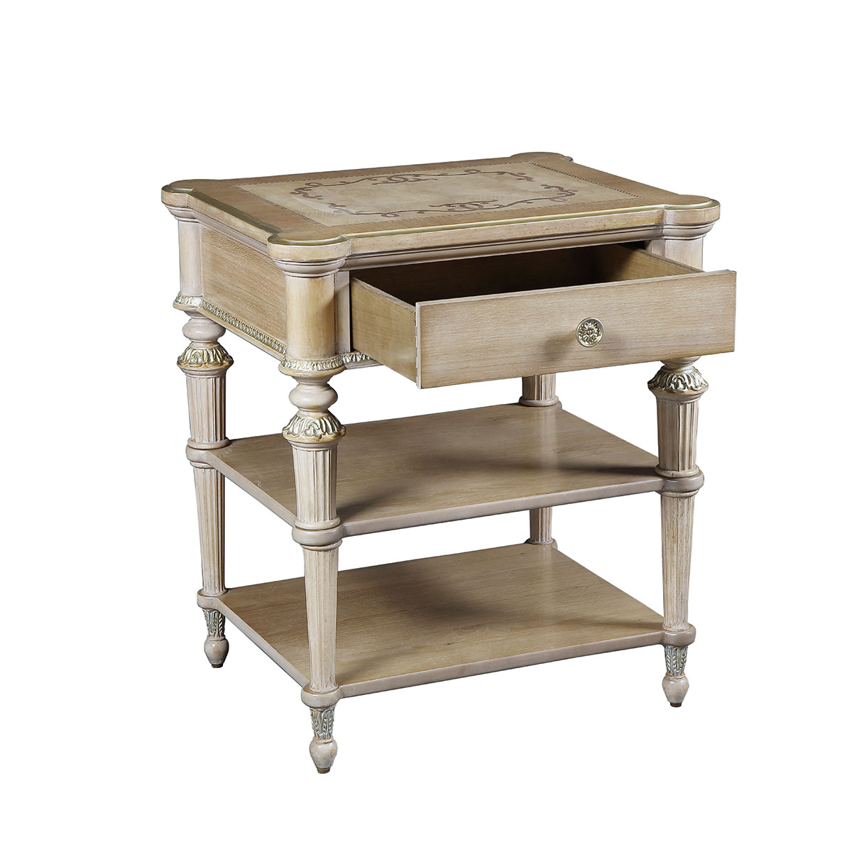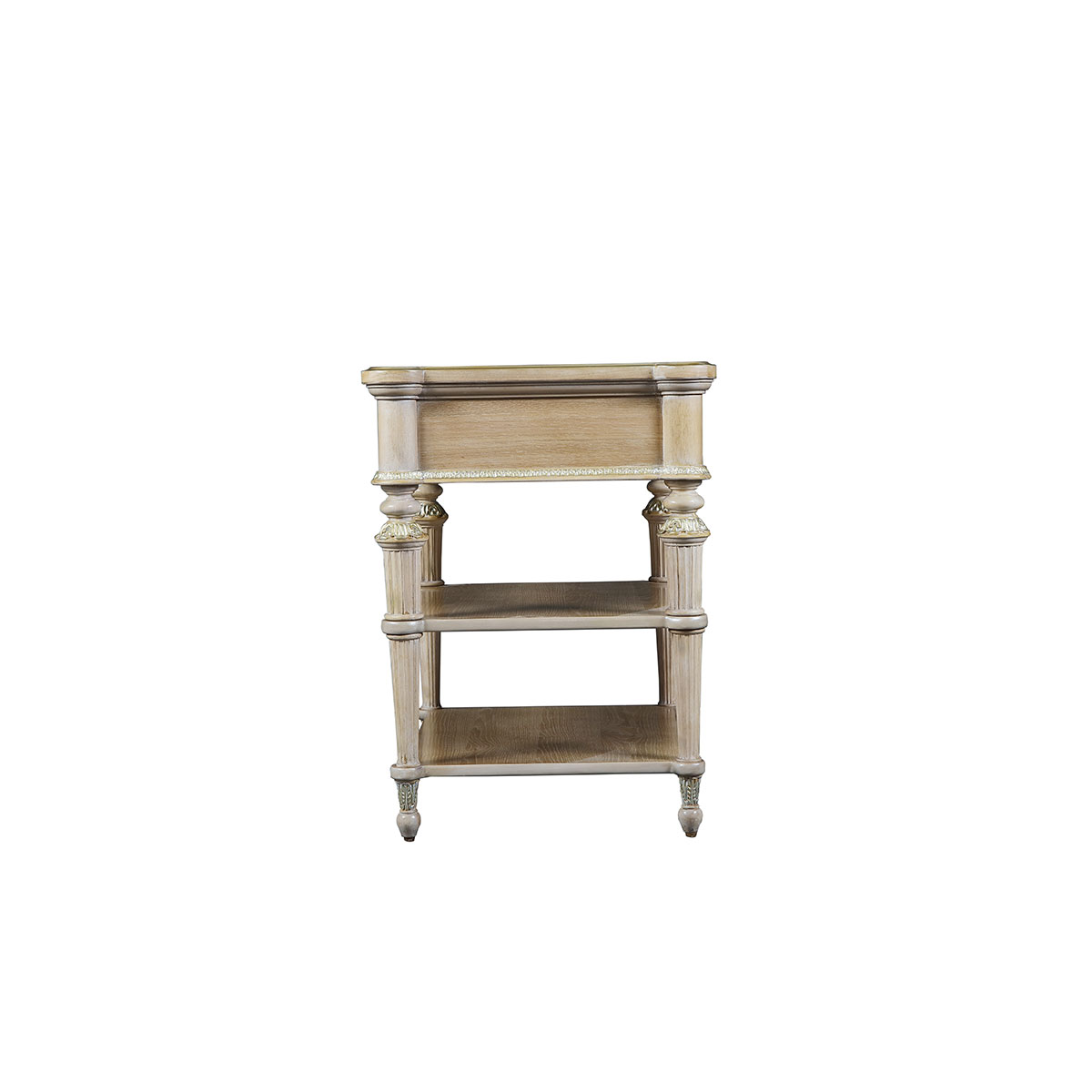 * 一个储物抽斗,其底部采用经典硬木实木滑轨; * 上面为开空设计,可放便存取物品; * 脚部装有可调整脚钉;