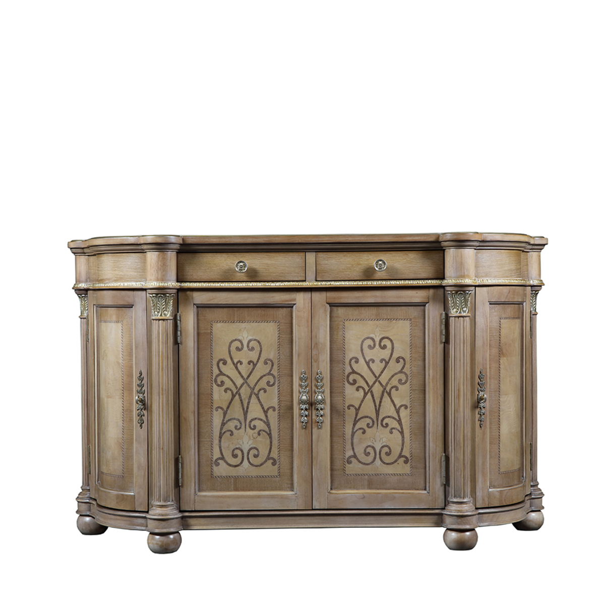 橡胶木+环保人造板+橡木皮+白栓树瘤、黑胡桃木、枫木、装饰线条等木皮贴面