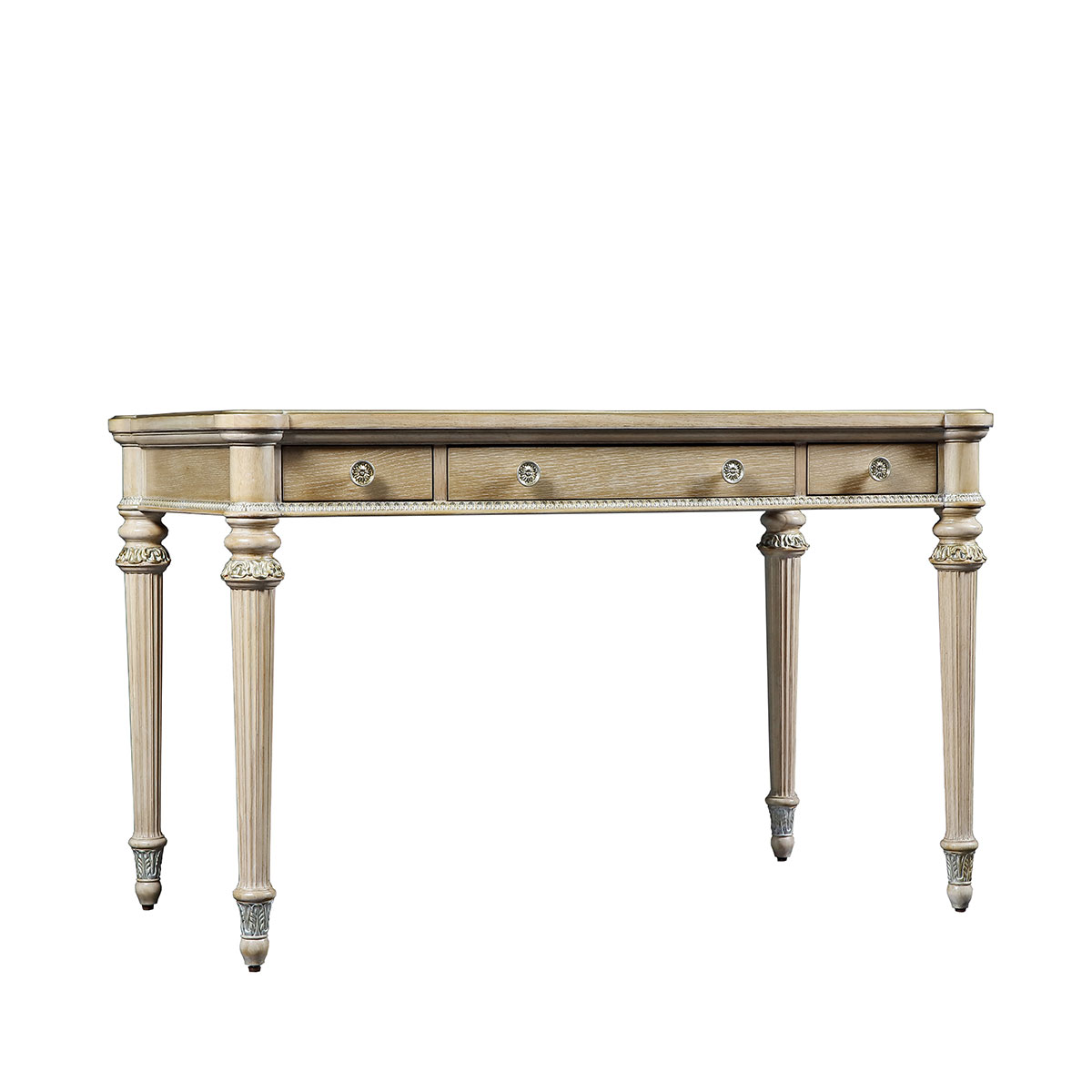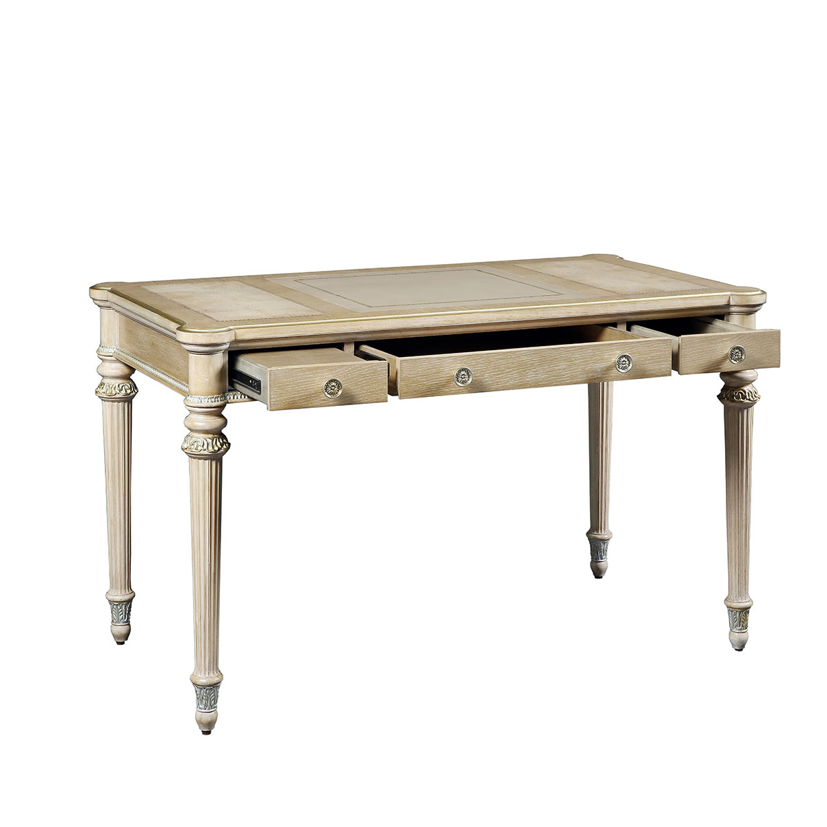 * 手工雕刻的工艺细节结实的连接技术18道以上的多步骤油漆工艺 * 共三个大小不同的抽斗。 * 中间为键盘斗,两边为鼠标斗; * 脚是可拆装的。 * 脚底部装有可调整的脚钉。