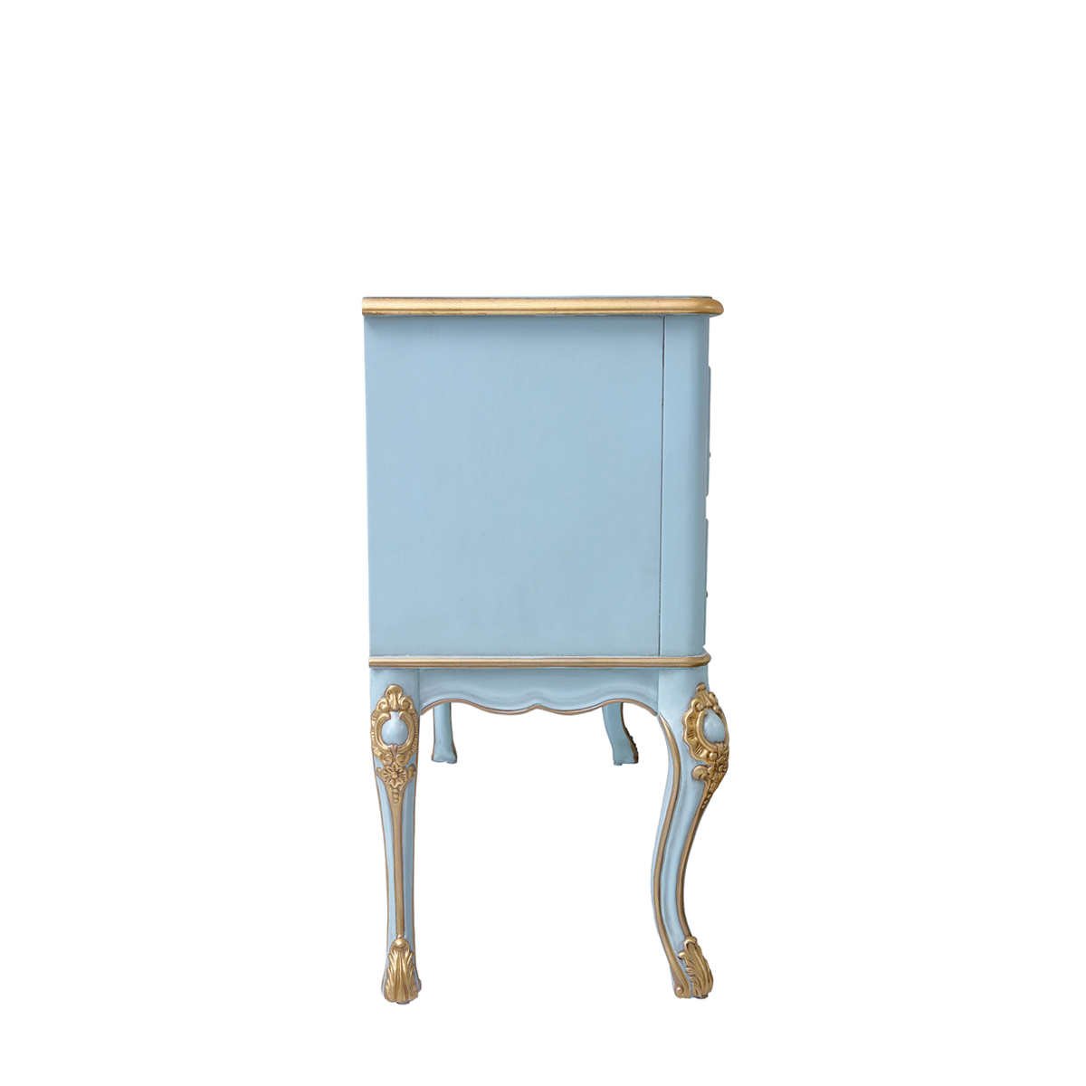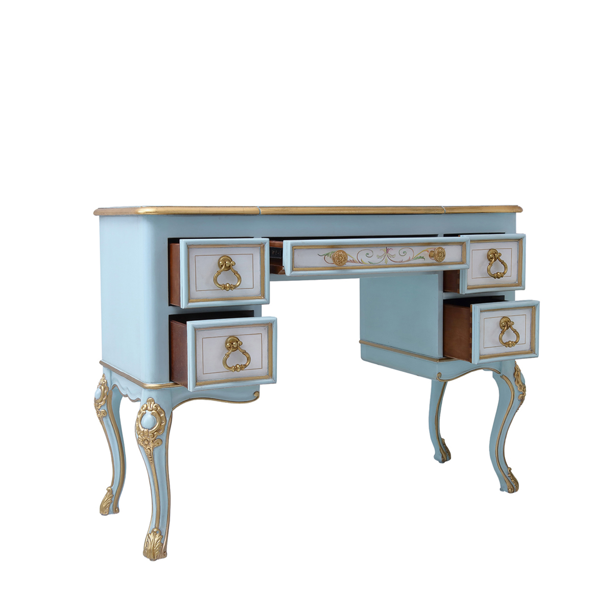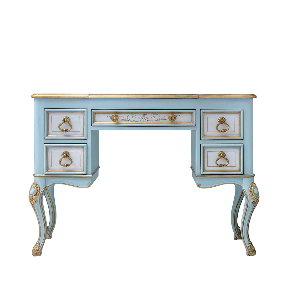 维罗纳清新梳妆台,以桑德罗·波提切利(Sandro Botticelli)所绘画的《维纳斯的诞生》为灵感来源,优雅的“S”弯脚如天鹅颀长的脖颈,配以明媚的维罗纳天空蓝,甜美梦幻,无疑是触动少女心的时尚设计。