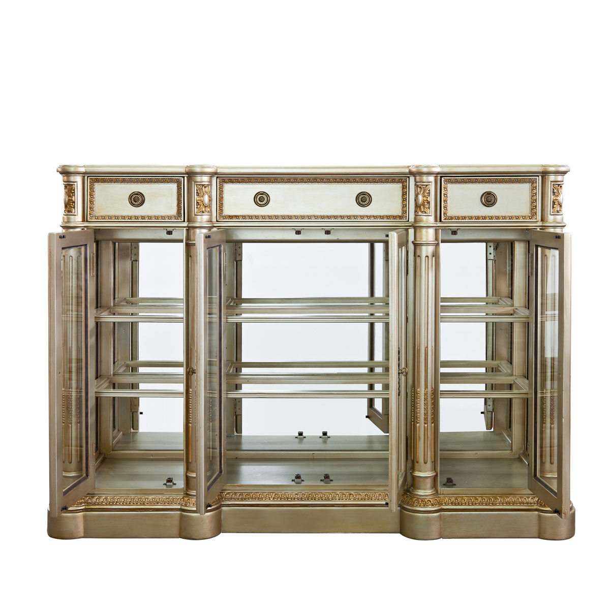 * 以法国路易十六时期的古董球盟会(中国)·网页登录为设计基础,采用同时期的建筑柱元素和耀眼奢华的网眼图案、金箔贴饰,使其充满了法式宫廷的优雅与华丽,充分诠释了18世纪法式球盟会(中国)·网页登录融合建筑与球盟会(中国)·网页登录设计的艺术特点。