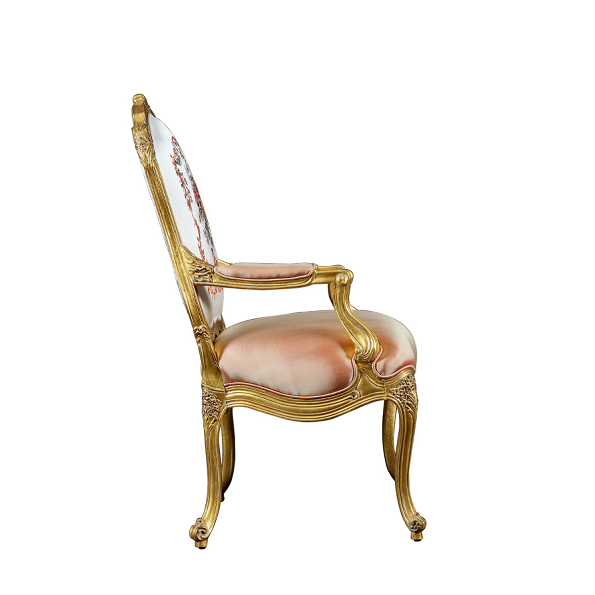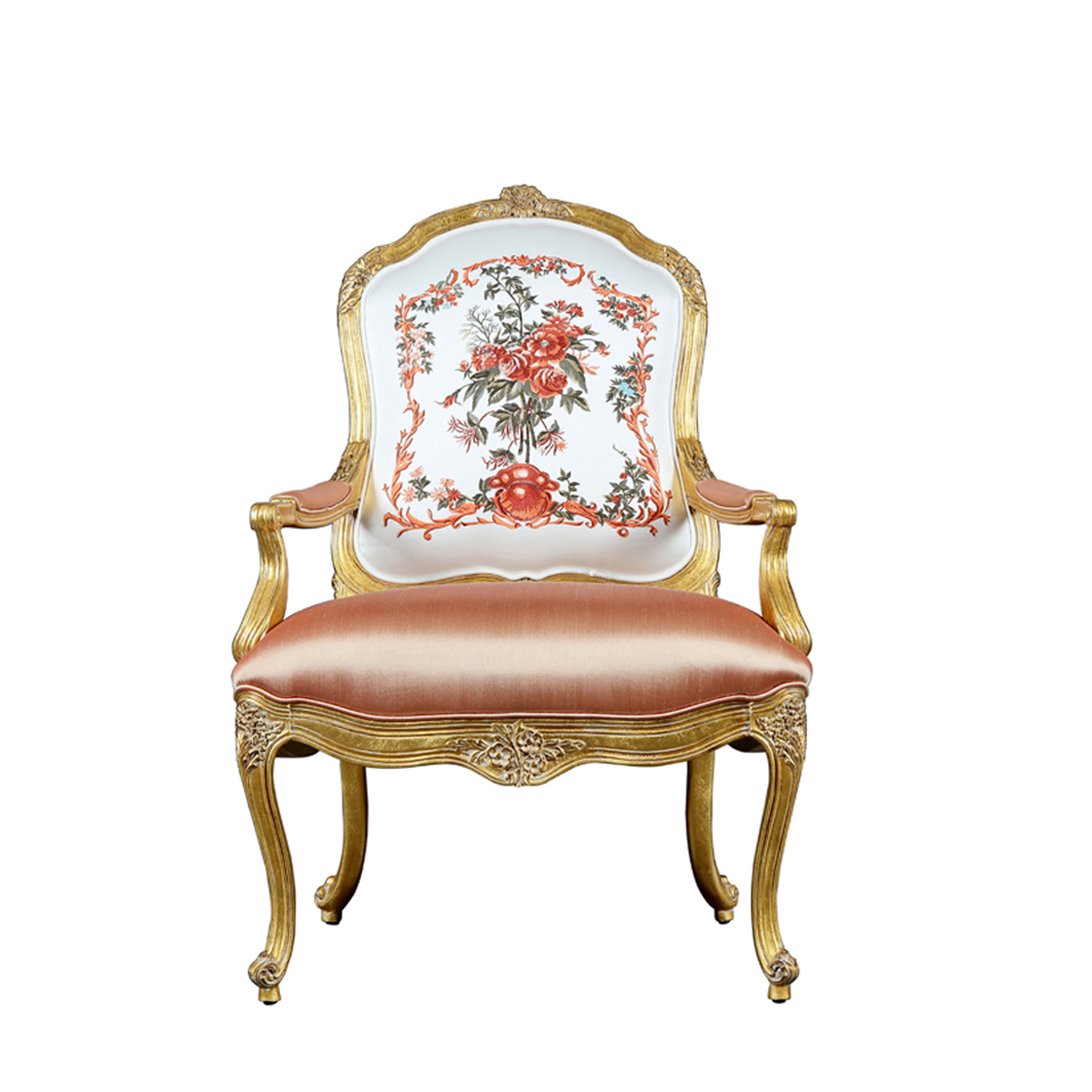 French Chanson法国香颂餐椅,温婉绵长的法式雅韵之风。古雅舒适的漆雕、经典的法式弯脚、爬满藤蔓的斗面,箭形麦式的椅背、玫瑰花印花布艺、洛可可艺术等等诠释法式的优雅。