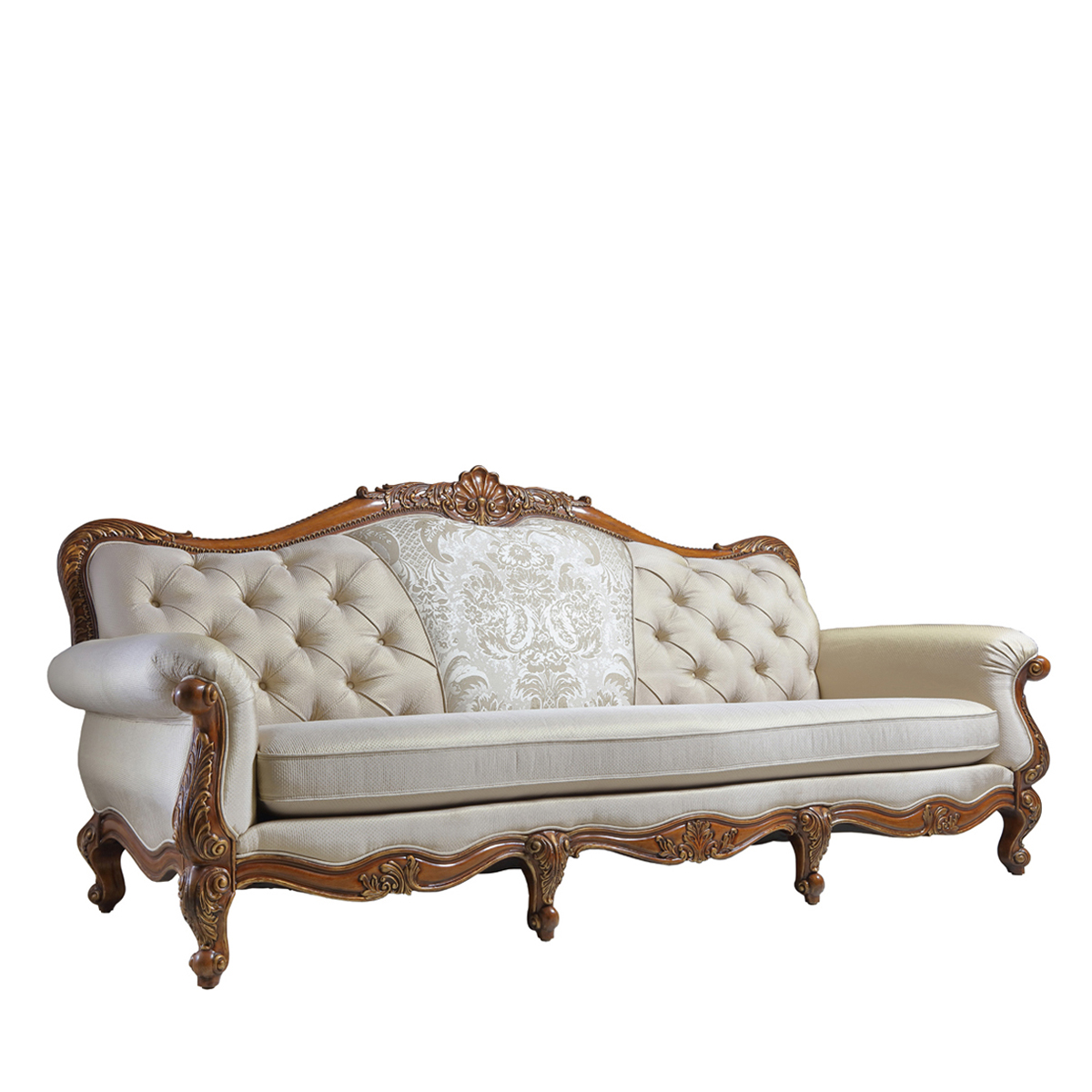 * 线条行的沙发造型犹如香颂般高低起伏的音律, 精致的实木雕刻是其中曼妙的点缀, 双重触感的软包部分带来杜乐丽花园的休闲惬意。
