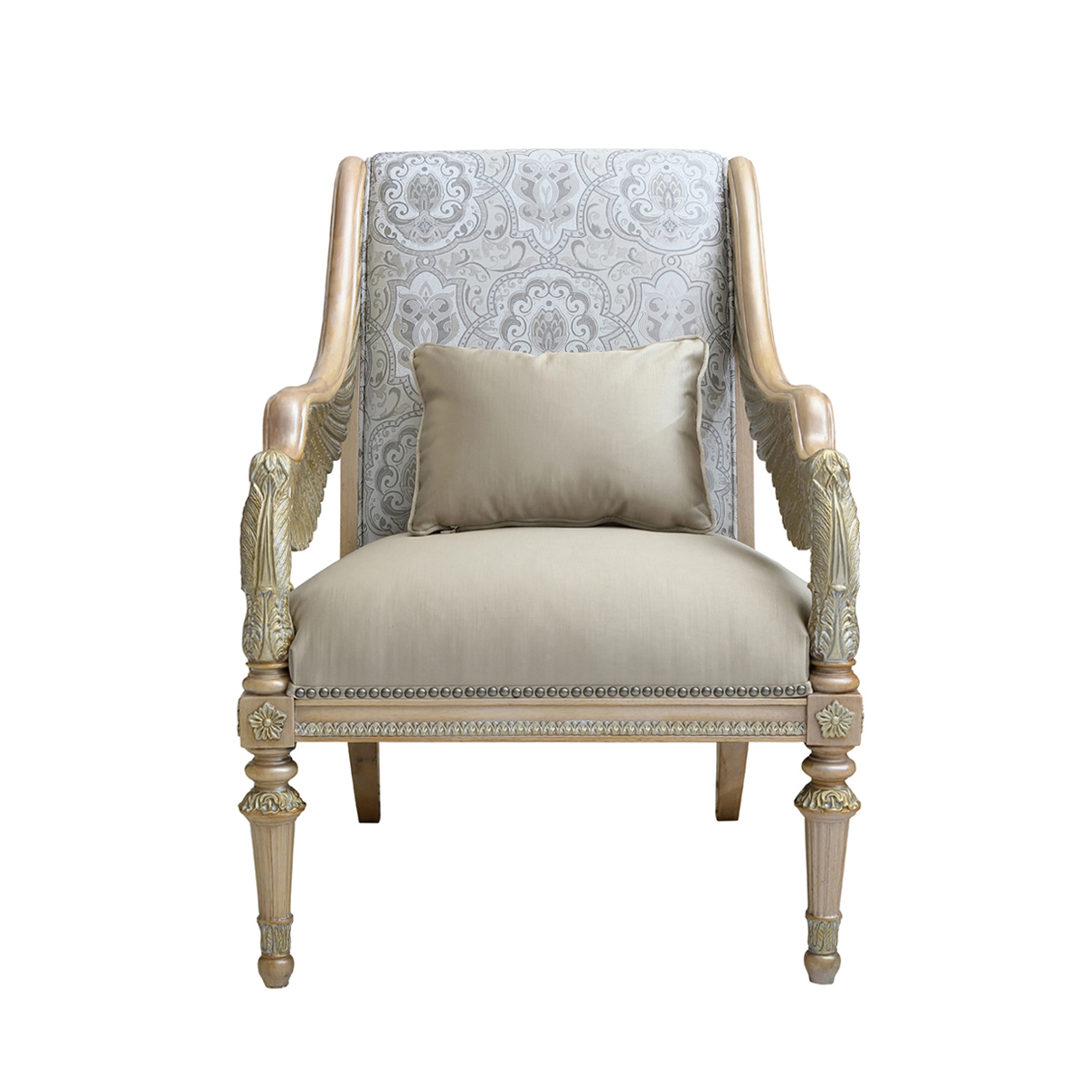 * 外形框架使用手工实木雕刻 * 椅背前后方及坐垫包有丰厚的填充物 * 提供多种面料可供选择;
