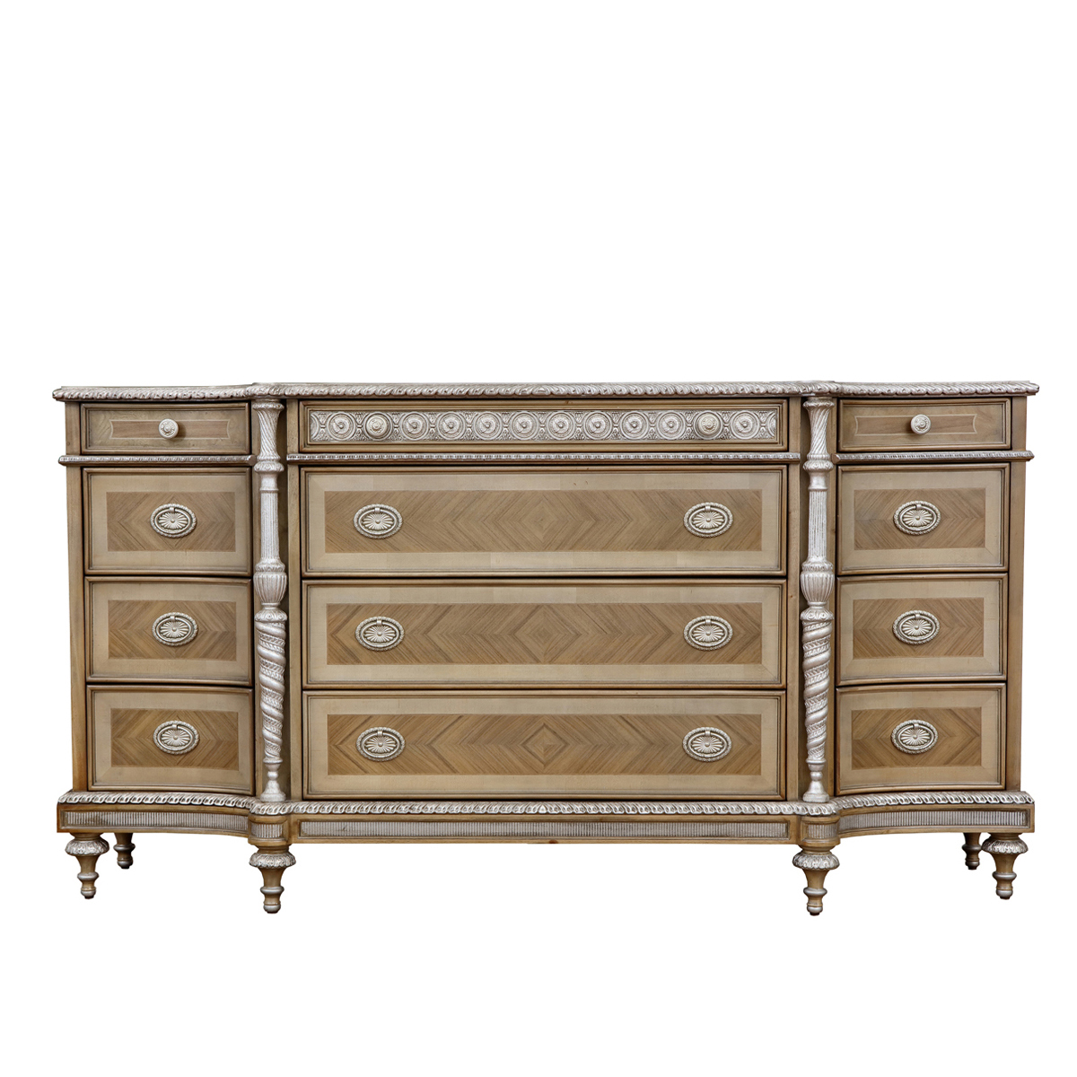 * 十二个储物抽斗,采用硬木实木滑轨 * 顶上中间一个翻斗,可放DVD电器。内部提供电器线出入孔; * 脚部装有可调脚钉;