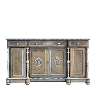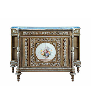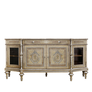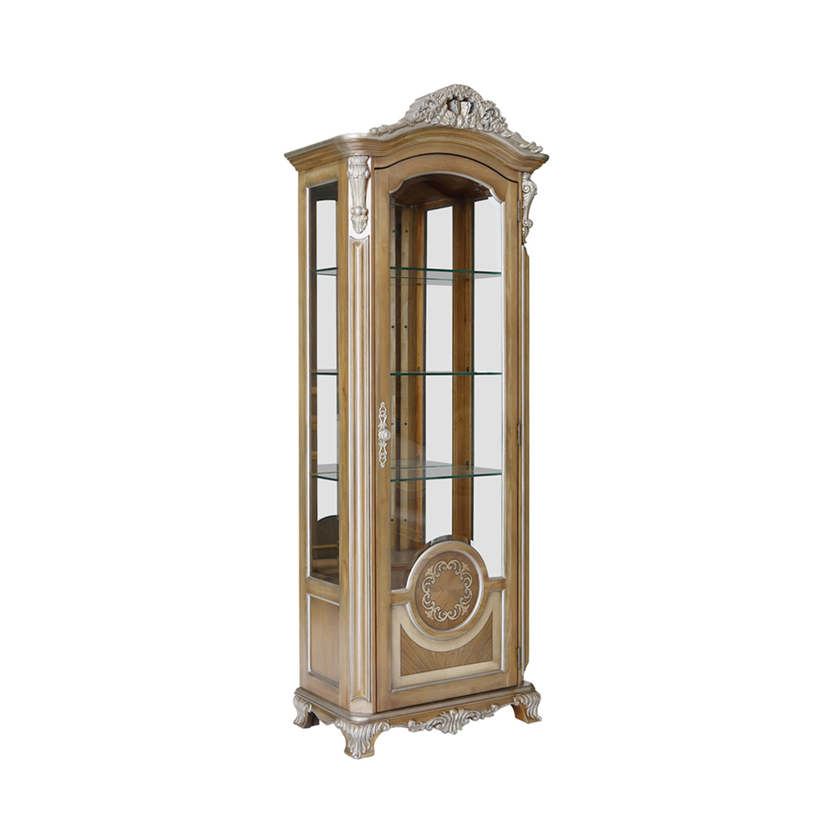 * 精致的手工雕刻细节 * 实木框玻璃门,门内有三块玻璃层板; * 底部装有可调层板;