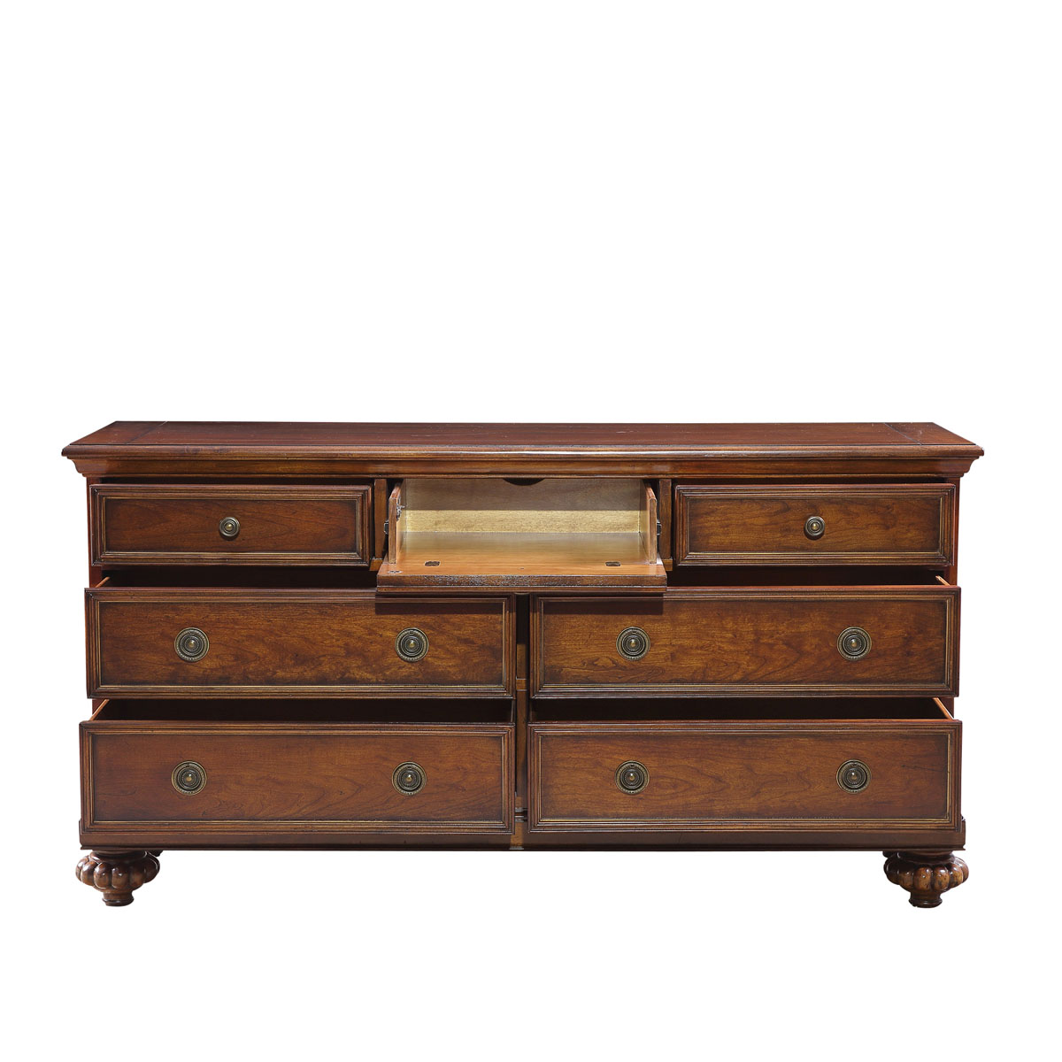 * 七个大小不同的储物抽斗; * 上面中间抽斗可翻下抽斗面(两侧装有消声铁滑轨),可放DVD电器, 背板有通线孔; * 脚是可拆装的; * 脚底部装有可调脚钉;