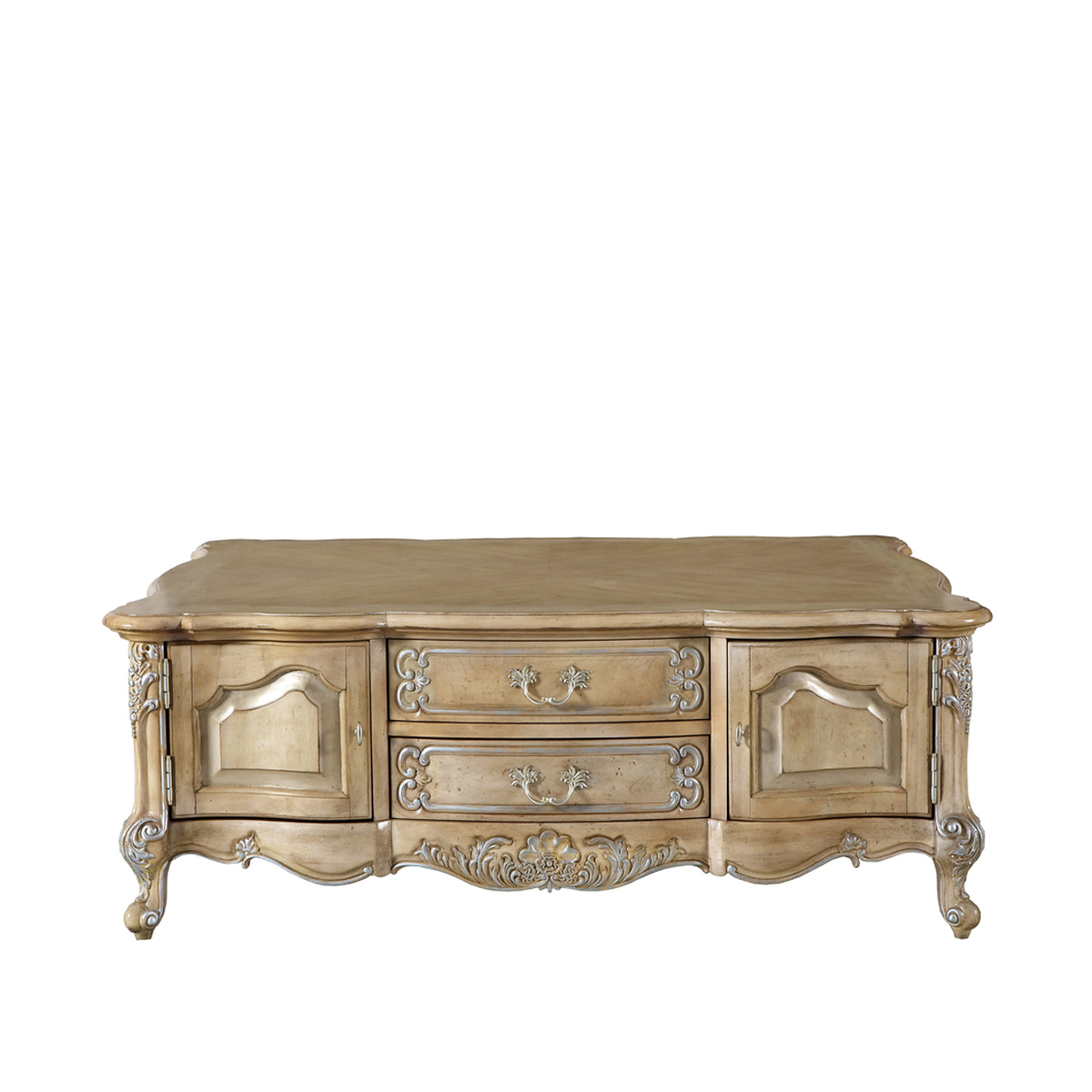 * 手工雕刻的花圃、藤蔓、阿坎瑟斯卷叶图案和弯脚设计; * 两个储物抽斗,并在其底部采用经典硬木实木滑轨设计; * 门内配有可调层板;门使用包边合页,使门更牢固; * 脚底部装有可调脚钉;