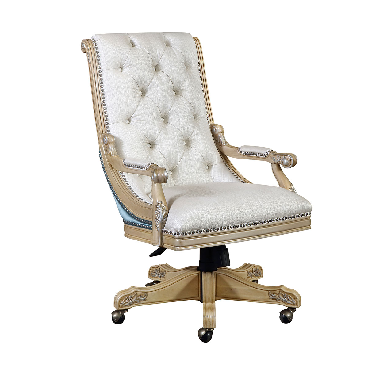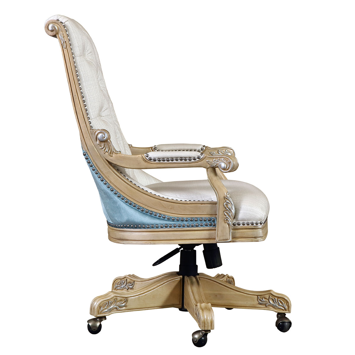 * 配有一个升降器,落地配有5个脚轮; * 椅背、座垫有多种布艺可供选择;