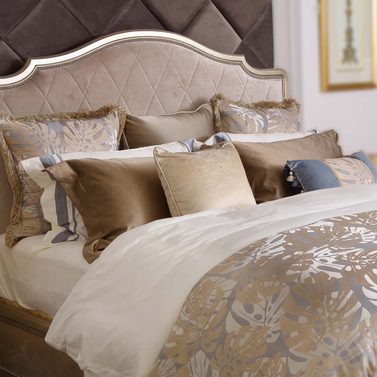 床品四件套:1套;装饰抱枕A: 650*650MM 2个;装饰抱枕B:650*650MM 1个;装饰长枕:750*480MM 2个;装饰抱枕C:550*350MM 1个;装饰抱枕D:480*480MM 1个;床尾搭毯:2500*2500MM 1条;