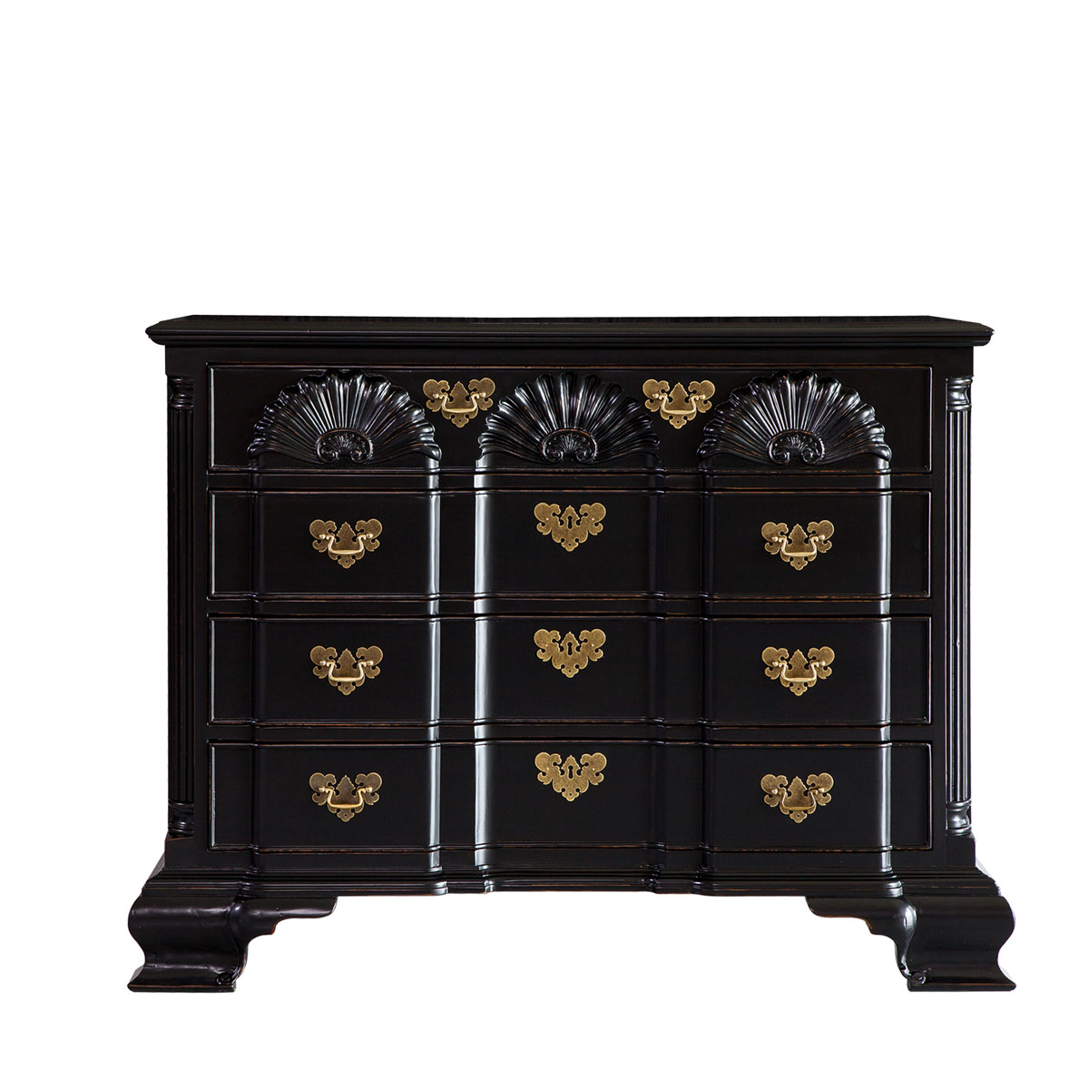 * 以18世纪著名设计师 John Townsend (约翰.汤森)在70年代制造的边柜为原形,重现其当时的辉煌。其象征幸运女神的贝壳形雕刻,建筑柱元素造型和蝴蝶形的黄铜拉手,配以经典的黑色油漆,充分表现了美国果敢坚毅的开拓精神与多元融合的美式球盟会(中国)·网页登录特色。而学士柜的古董原作品现由美国纽约大都会博物馆收藏。