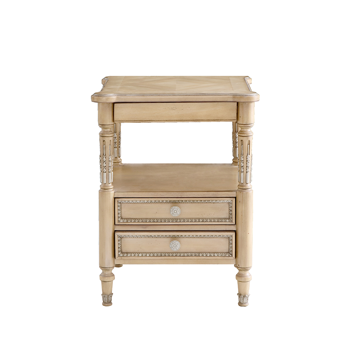 * 精细的雕刻工艺配上仿金箔与十八道油漆工艺。 * 结实的连接技术。 * 二个储物功能的抽斗。 * 多种实木薄片拼接工艺。