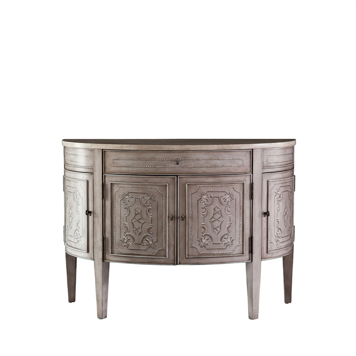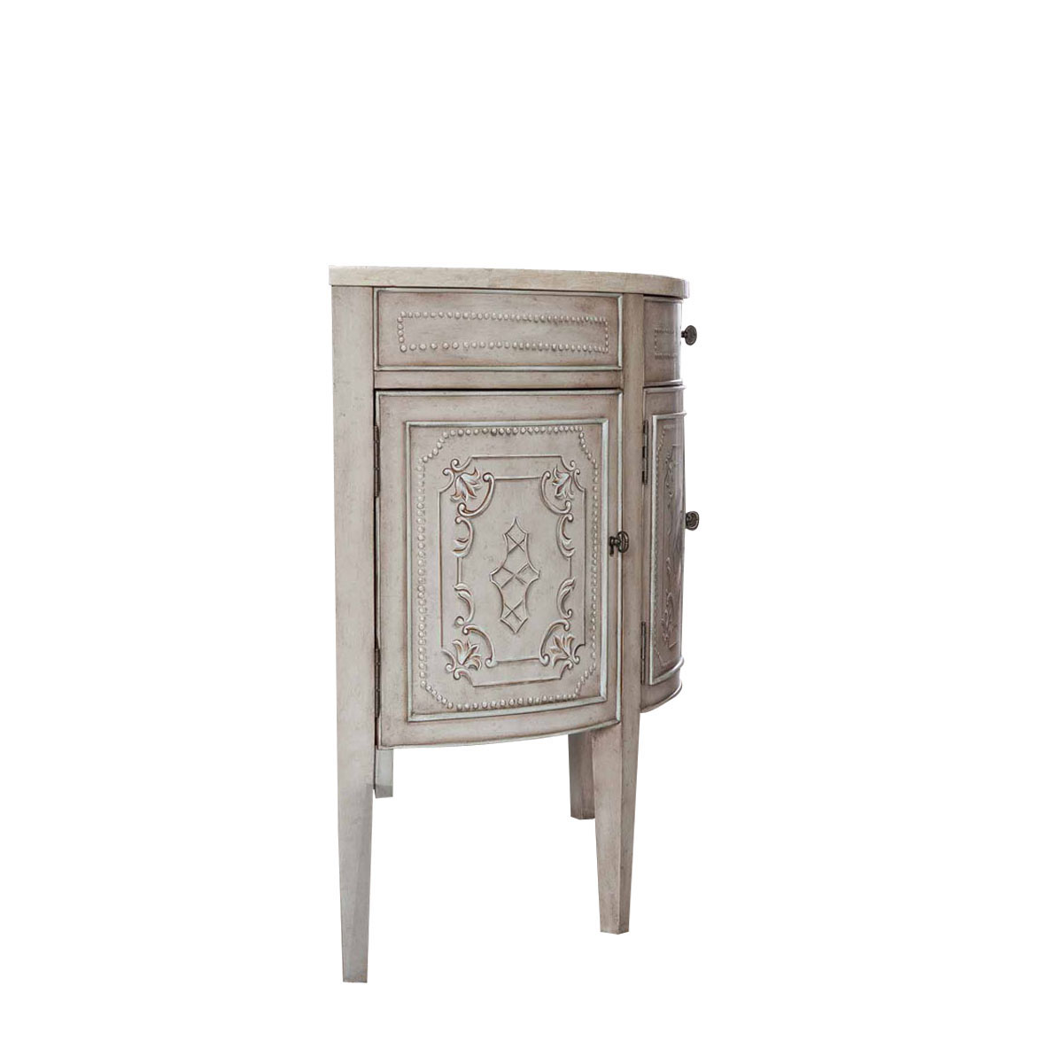* 高贵的古银色为这款半圆柜镀上了一层永不过时的经典外衣,开裂纹、明暗不一的色泽等做旧工艺留住了岁月的印迹,洋溢着古董球盟会(中国)·网页登录的艺术风骨;简洁优雅的雕刻图案,蕴藉着耐人寻味的美学内涵,如若传之后世更显光彩荣耀。