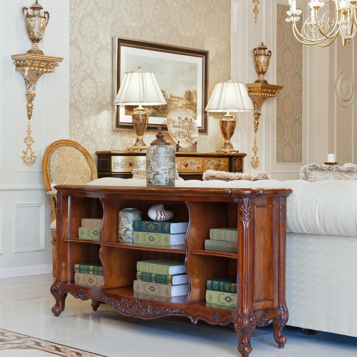 * 手工雕刻的藤蔓、阿坎瑟斯卷叶图案和弯脚设计 * 结实的连接技术 * 这款沙发桌设有三块可调整层板 * 底部装有可调整脚钉;