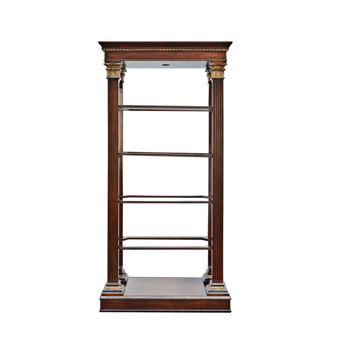 * 开放式空间,空间内部装有4块可调节间距的层板; * 内顶上有一个微调的筒灯,采用220v、35w灯泡; * 雄浑厚重的的实木柱,配以精巧别致的手工雕刻,更显大气; * 无论是靠墙或是做为隔墙使用都能显出主人的霸气,也可以两件并排组合使用;