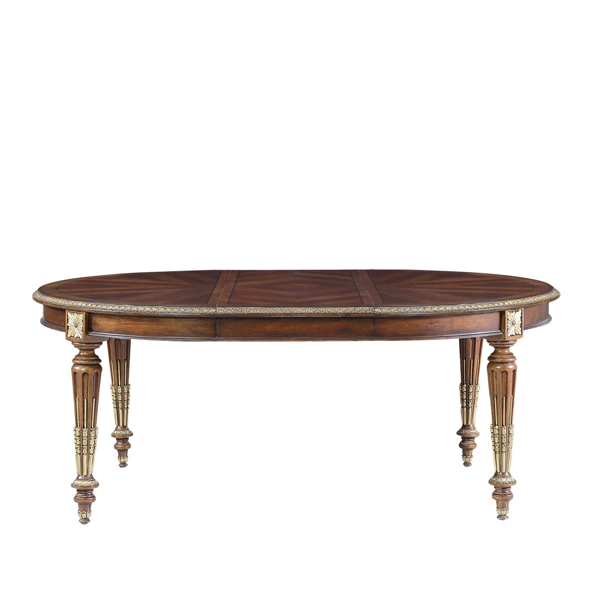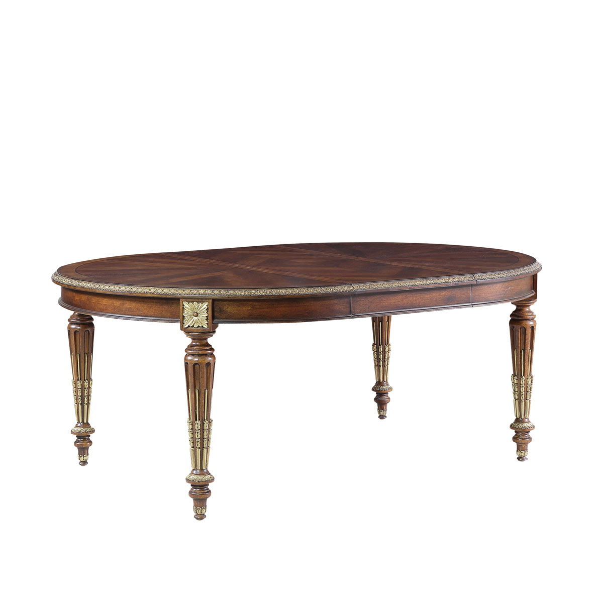 * 为表现法国路易时期的庄严和浪漫,以法国凡尔赛宫为设计元素。使用歌颂路易十四时期的太阳花雕刻,显示其王权稳固地位的锥形腿脚设计;配以钻石图案木皮贴面、可调节的伸板设计和贴金工艺,完美演绎了法式宫廷球盟会(中国)·网页登录的奢华尊贵。
