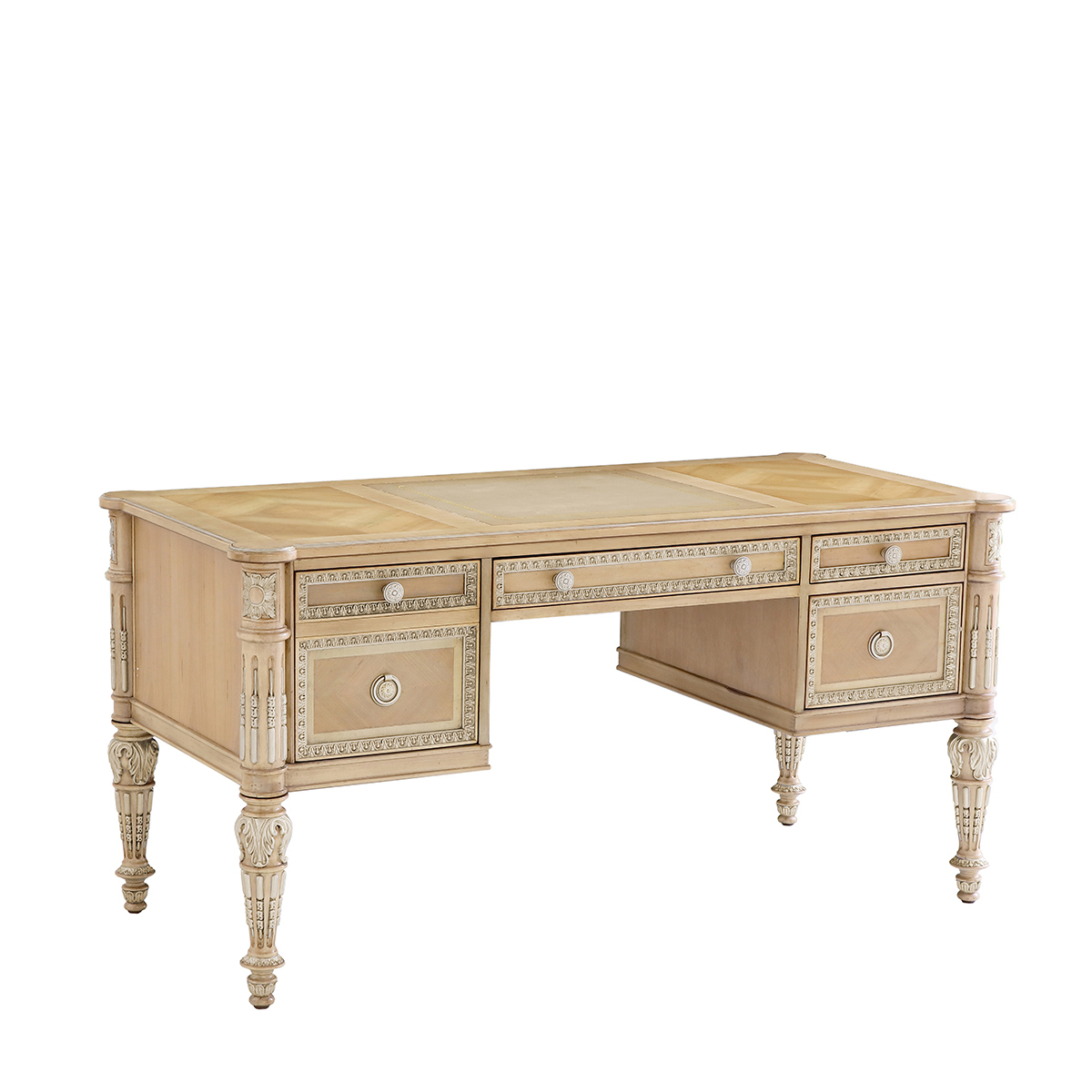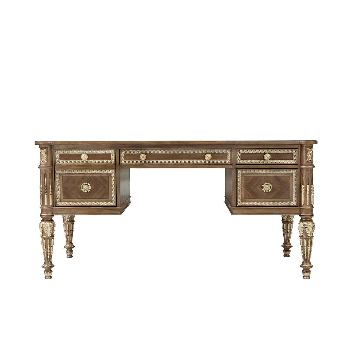 * 为表现法国路易时期的庄严和浪漫,以法国凡尔赛宫为设计元素。使用歌颂路易十四时期的太阳花雕刻;显示其王权稳固地位的锥形腿脚设计,配以钻石图案木皮贴面、古铜色球形把手和贴金工艺,完美演绎了法式宫廷球盟会(中国)·网页登录的奢华尊贵。
