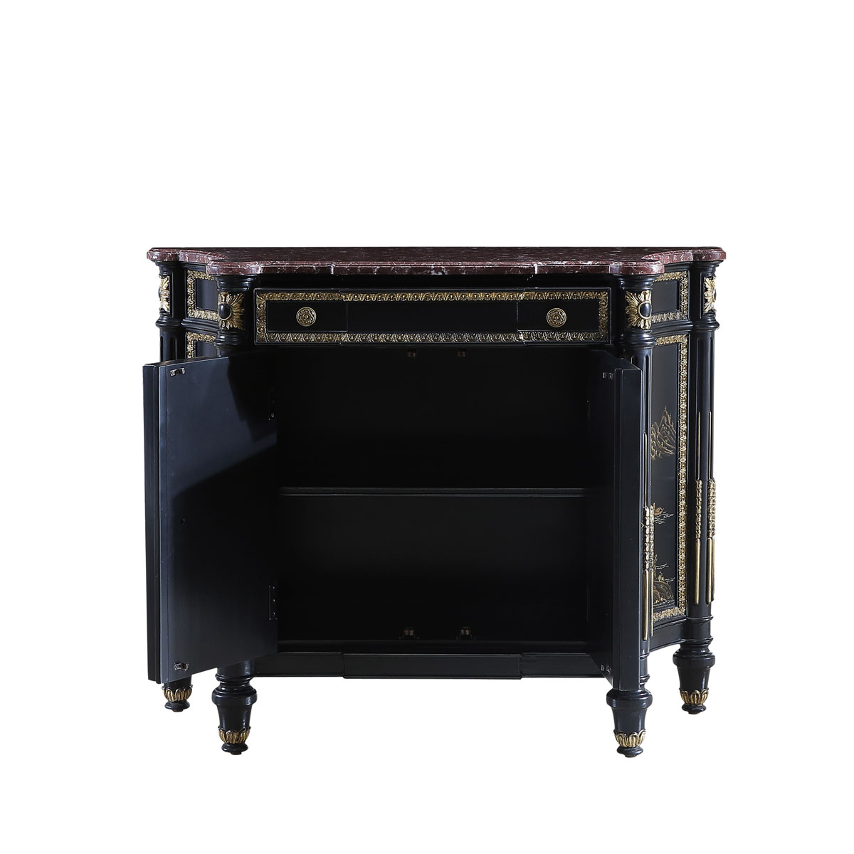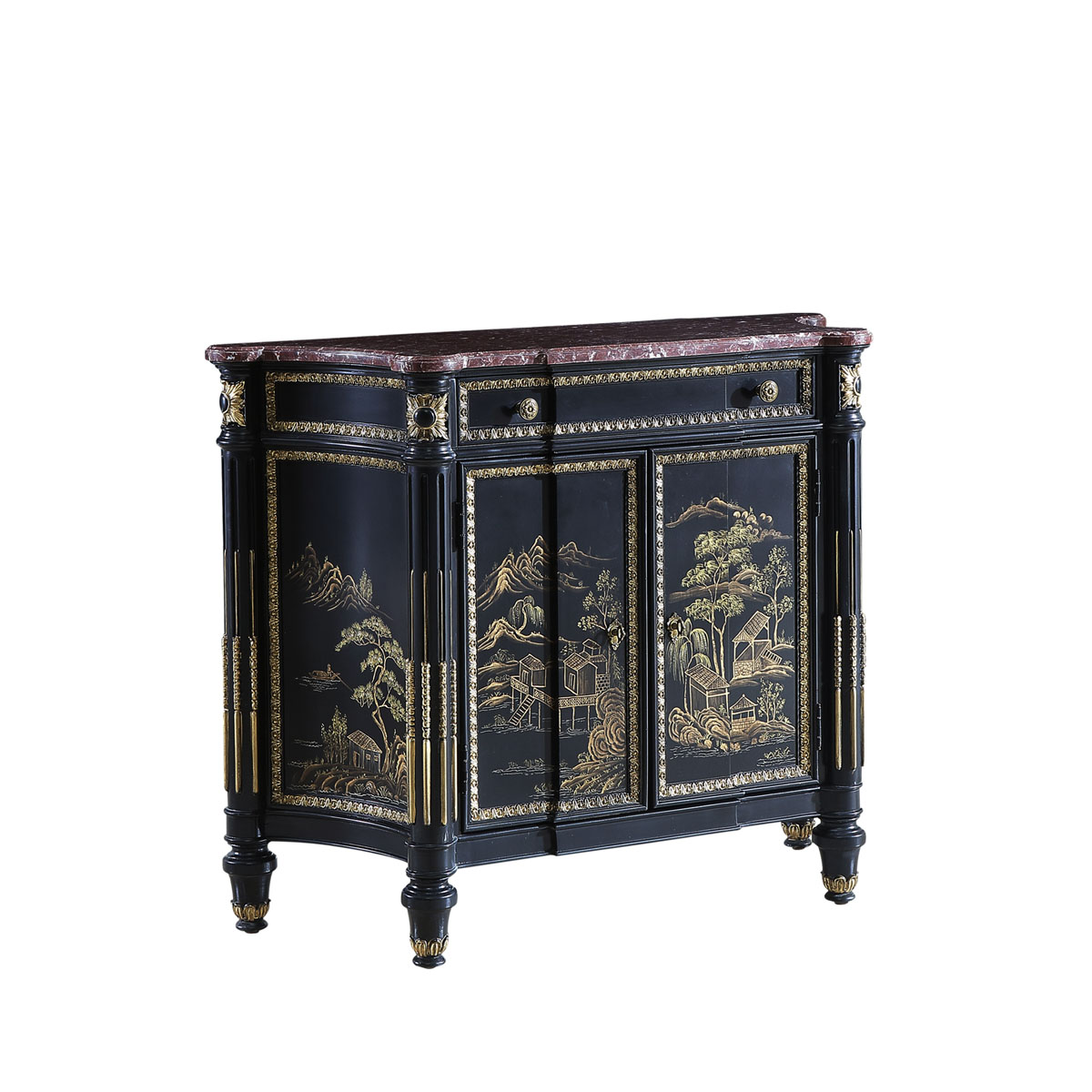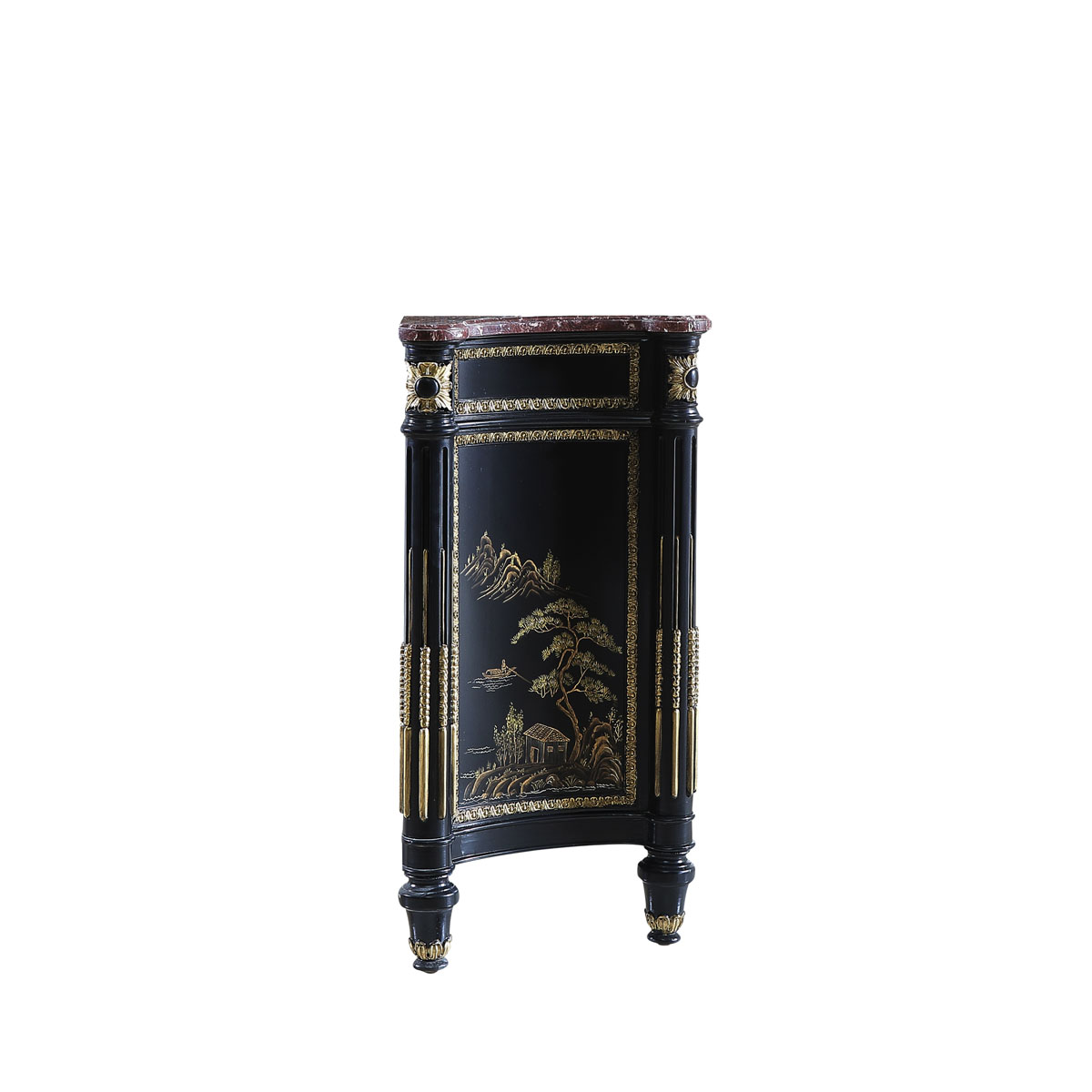 * 手工雕刻的工艺细节 * 结实的连接技术 * 光滑的花岗岩石表面 * 前方有一个抽斗,其底部采用经典硬木实木滑轨设计,门内有一块可调整层板 * 由于雕刻和彩绘是由专业工艺师纯手工精制而成,所以每一件产品都成为独一无二的艺术品