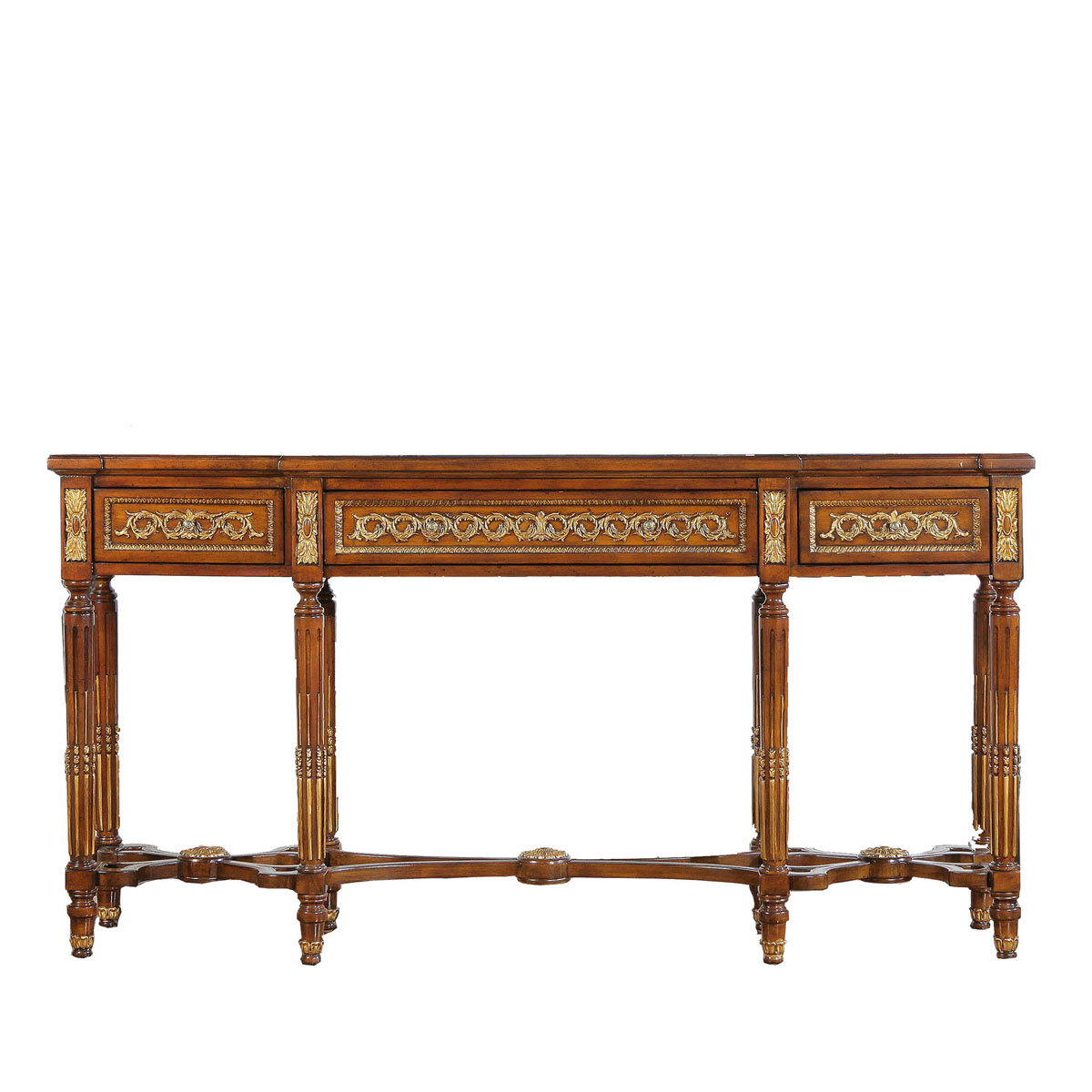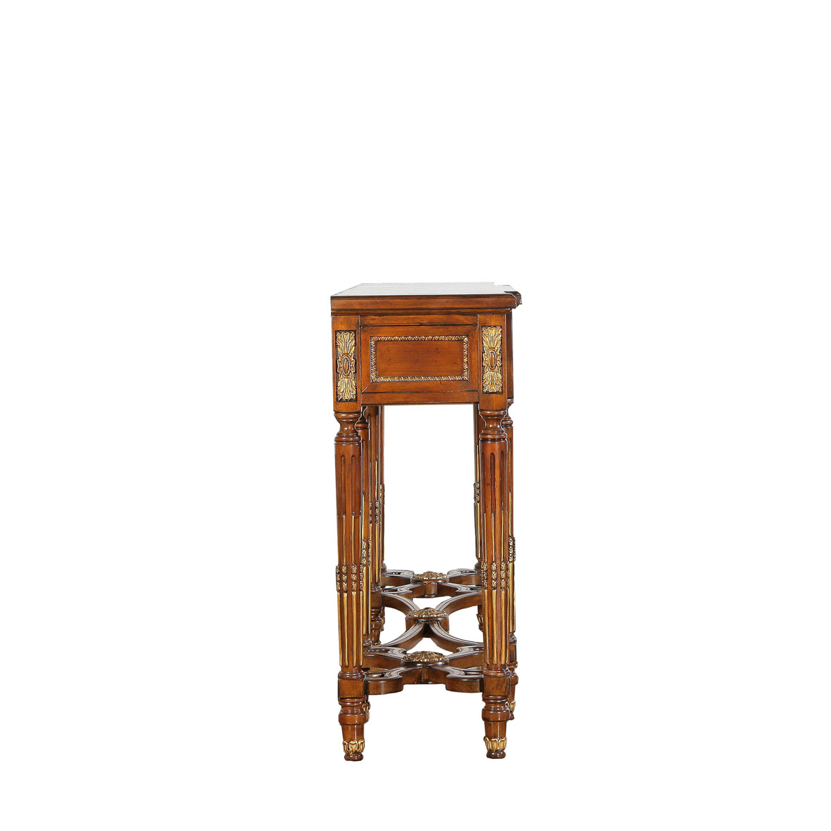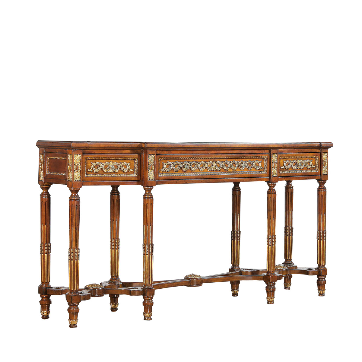 * 手工雕刻的工艺细节 * 结实的连接技术 * 三个储物抽斗,而在其底部采用经典硬木实木滑轨设计;可灵活拆装.