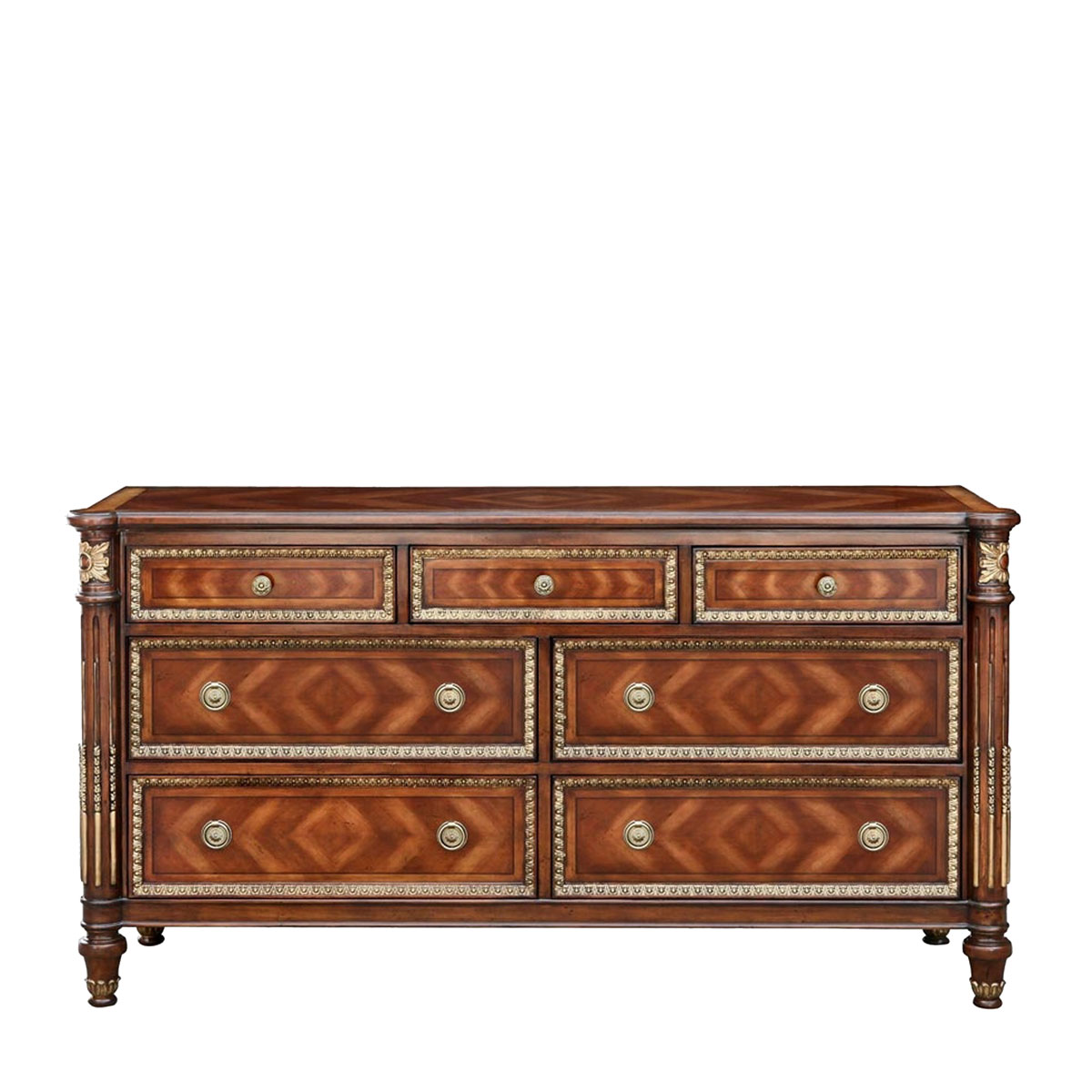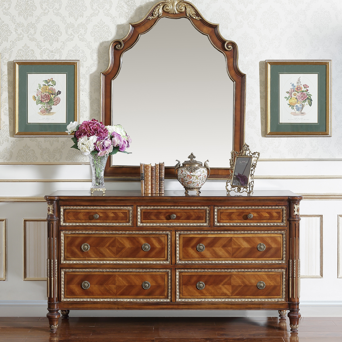 * 为表现法国路易时期的庄严和浪漫,以法国凡尔赛宫为设计元素。使用歌颂路易十四时期的太阳花雕刻,显示其王权稳固地位的锥形腿脚设计,配以钻石图案的木皮贴面、古铜色的球形把手和贴金工艺,完美演绎了法式宫廷球盟会(中国)·网页登录的奢华尊贵。