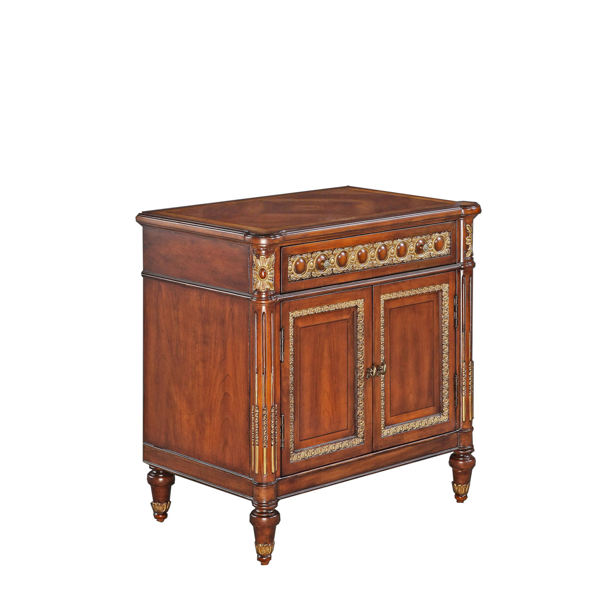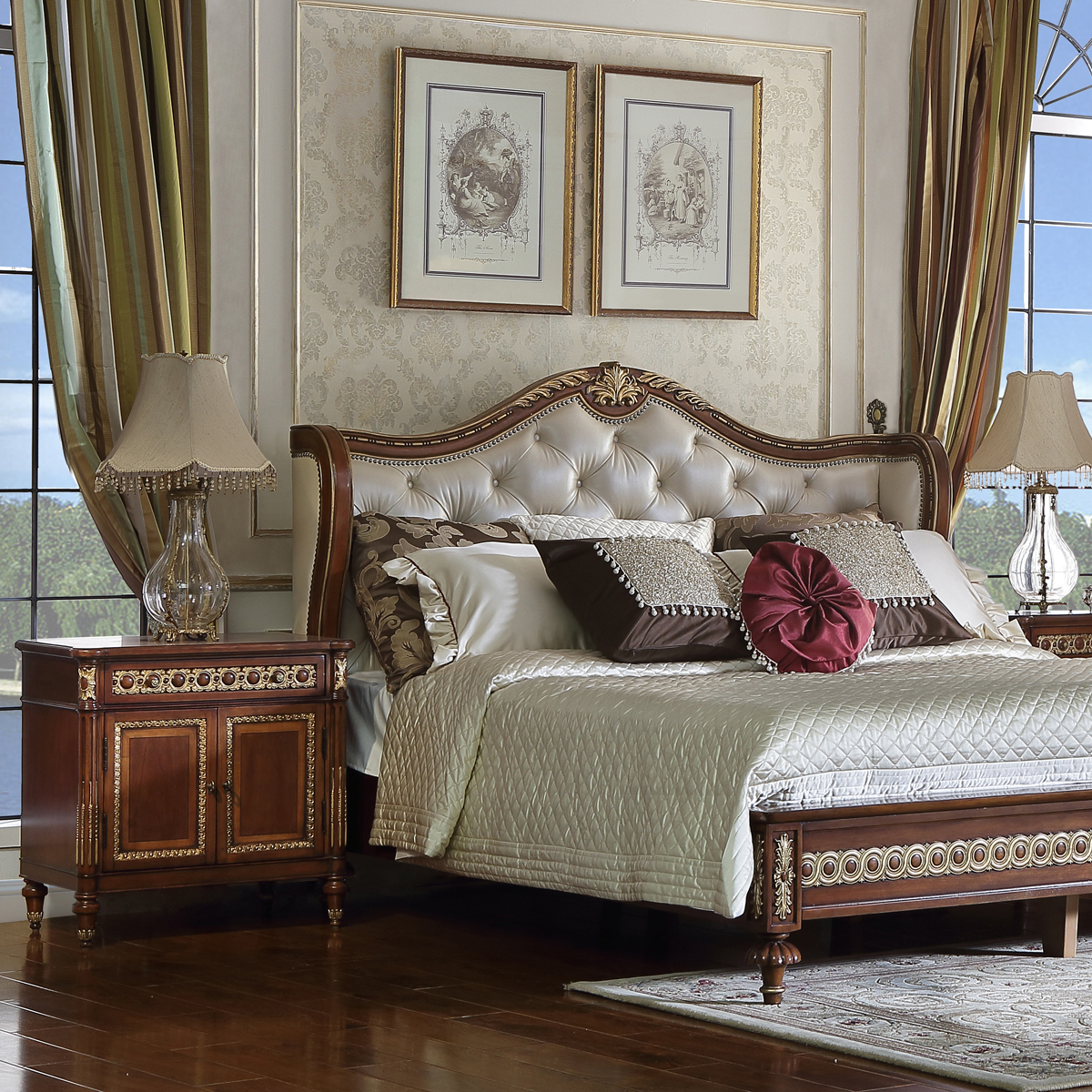 * 为表现法国路易时期的庄严和浪漫,以法国凡尔赛宫为设计元素。使用歌颂路易十四时期的太阳花连环雕刻,显示其王权稳固地位的锥形腿脚设计,配以钻石型木皮贴面与贴金工艺,完美演绎了法式宫廷球盟会(中国)·网页登录的奢华尊贵。