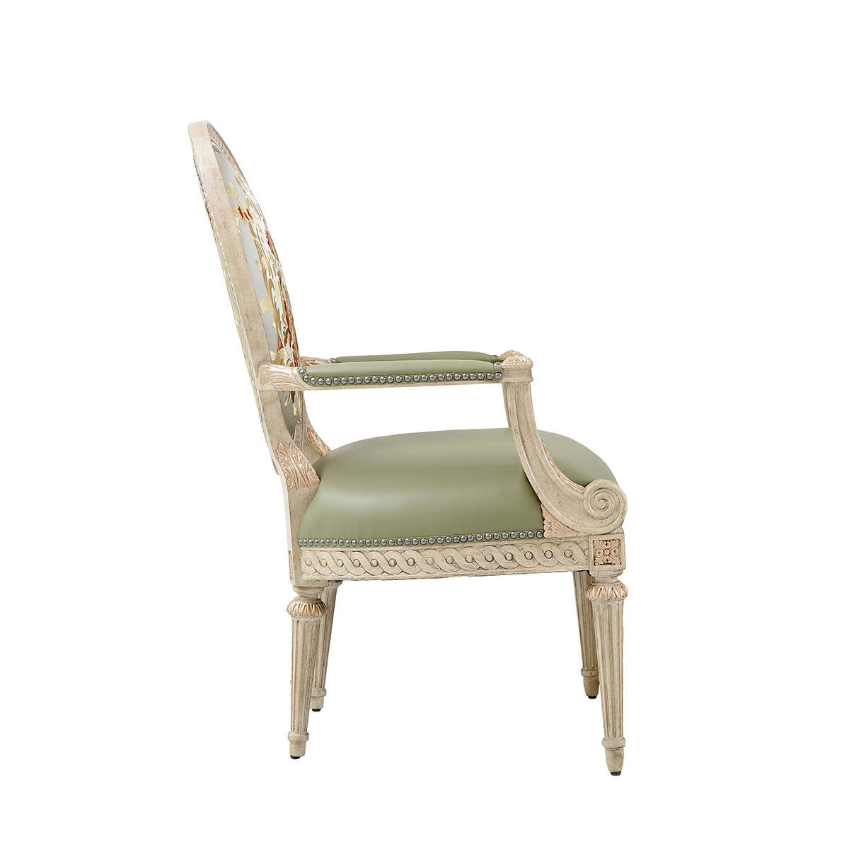 * 精细的手工雕刻配上仿金箔工艺结合十八道油漆工艺 * 坐垫和靠背包有丰厚的填充物; * 可拆装的软包座垫, * 提供多种面料可供选择