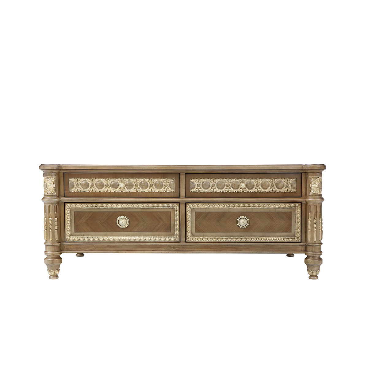 • 手工雕刻的工艺细节 • 结实的连接技术 • 4个为储物抽斗,而在其底部采用经典硬木实木滑轨设计