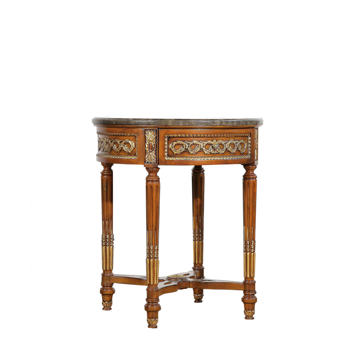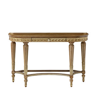 * 为表现法国路易时期的庄严和浪漫,以法国凡尔赛宫为设计元素。使用歌颂路易十四时期的太阳花连环雕刻,显示其王权稳固地位的锥形腿脚设计;配以哥特式建筑中的大圆窗骨架设计、珍稀大理石台面、建筑柱雕刻与绚丽的贴金工艺,完美演绎了法式宫廷球盟会(中国)·网页登录的奢华尊贵。