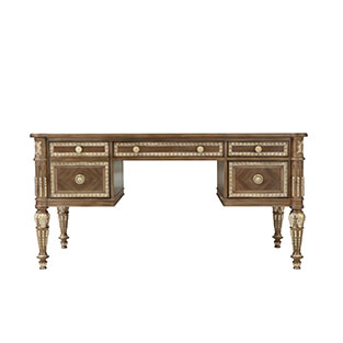 * 为表现法国路易时期的庄严和浪漫,以法国凡尔赛宫为设计元素。使用歌颂路易十四时期的太阳花雕刻;显示其王权稳固地位的锥形腿脚设计,配以钻石图案木皮贴面、古铜色球形把手和贴金工艺,完美演绎了法式宫廷球盟会(中国)·网页登录的奢华尊贵。
