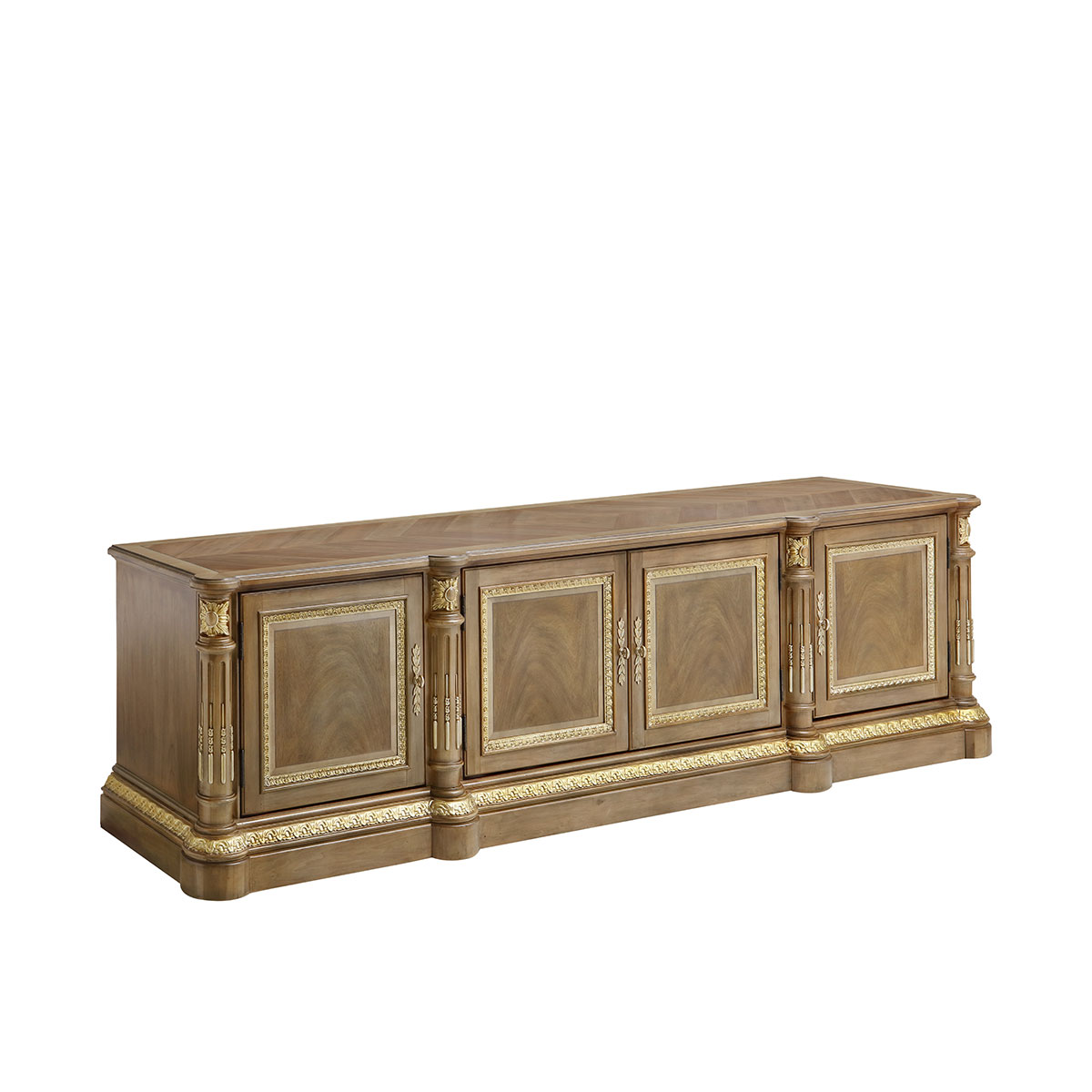 * 手工雕刻的工艺细节,结实的连接技术; * 中间两个储物抽斗配有CD/DVD隔板,可CD/DVD更好的存放,其底部采用经典硬木实木滑轨设计; * 两扇门内各有1块可调层板;上部为开空设计,可在内放播放器等电子器材; * 脚底部装有可调脚钉;