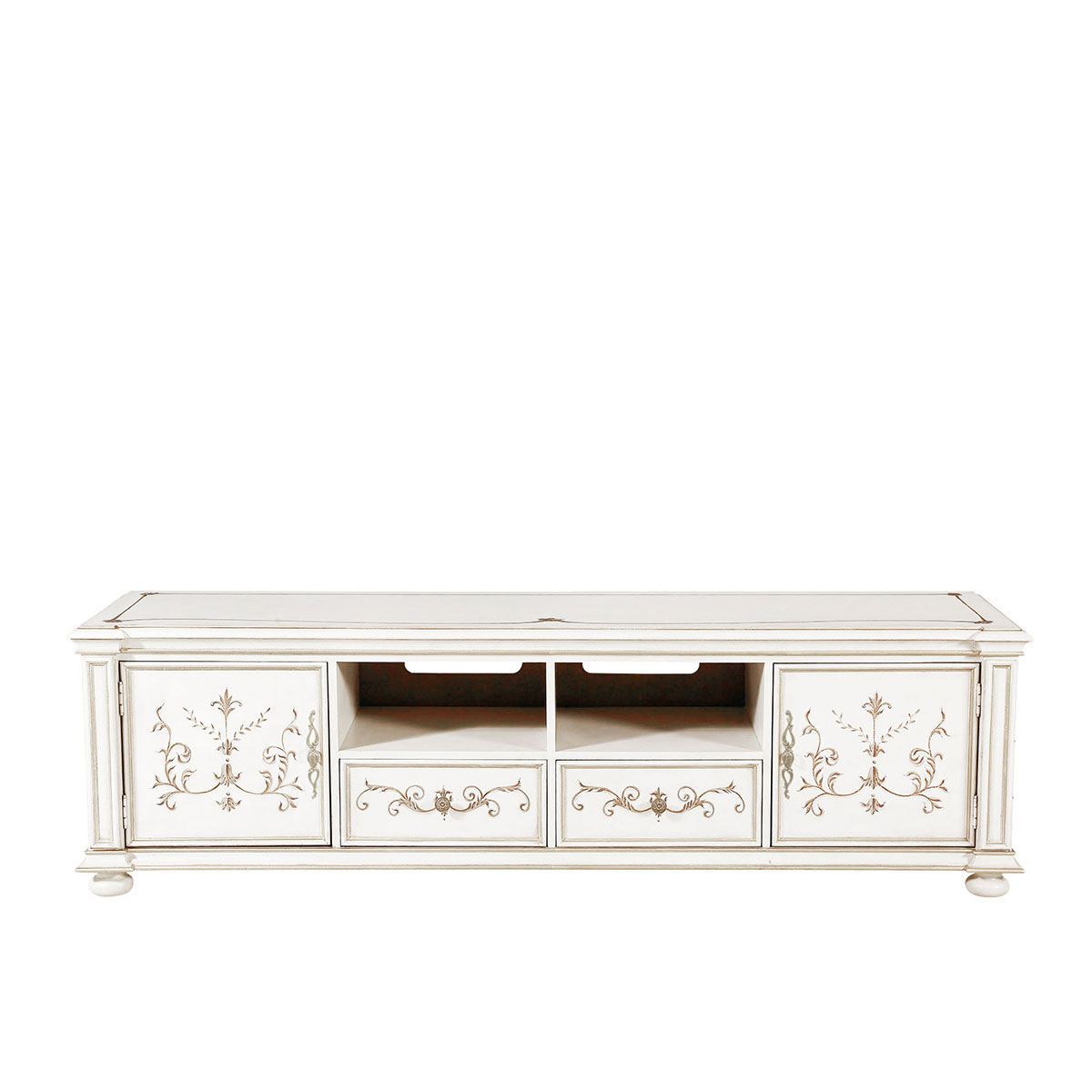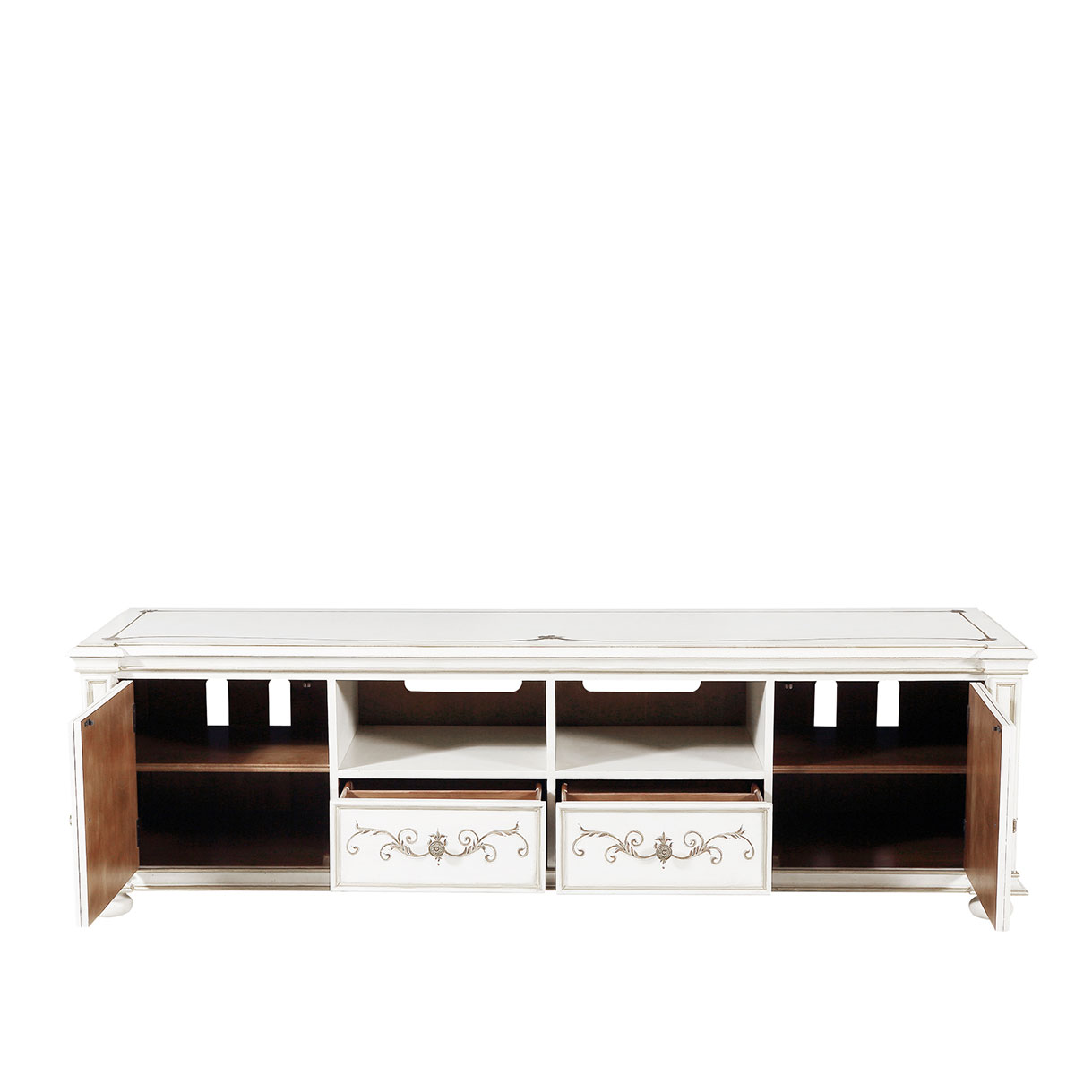 * 中间两个储物抽斗配有CD/DVD隔板,可CD/DVD更好的存放,其底部采用经典硬木实木滑轨设计; * 两扇门内各有一块可调层板;上部为开空设计,可在内放播放器等电子器材; * 脚底部装有可调脚钉;