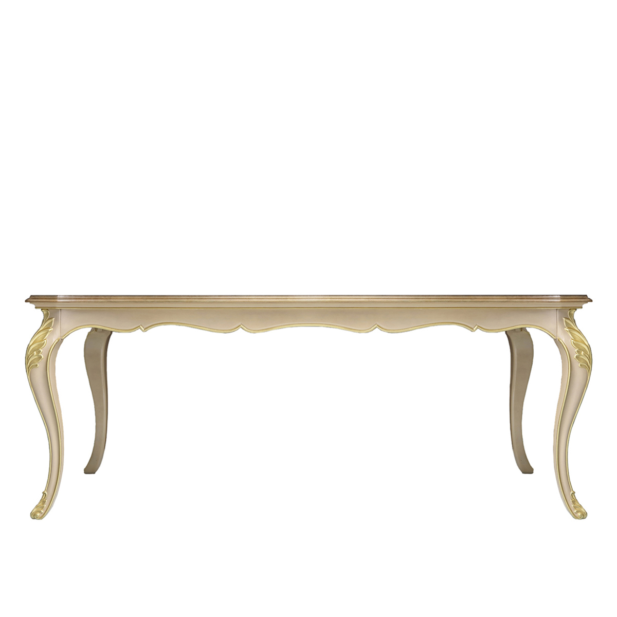 普罗旺斯经典的法式“S”型弯腿,如天鹅颀长的脖颈一样优美曼丽,结合波浪状的桌裙,更添曼妙之感;白色的涂装漆艺更是增添一抹圣洁;木皮拼花桌面沉稳大气的同时更具耐脏的实用效果。