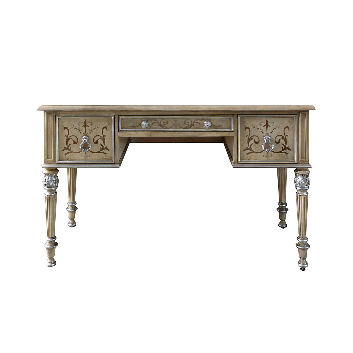 * 面板写字区域的皮革设计让你的书写更流畅; * 共三个大小不同的储物抽斗; * 中斗为键盘斗,左右两边为鼠标斗;抽斗内侧有电线孔,抽斗两边装有两条三节消声铁滑轨,滑顺耐用; * 脚是可拆装的; * 脚底部装有可调脚钉;