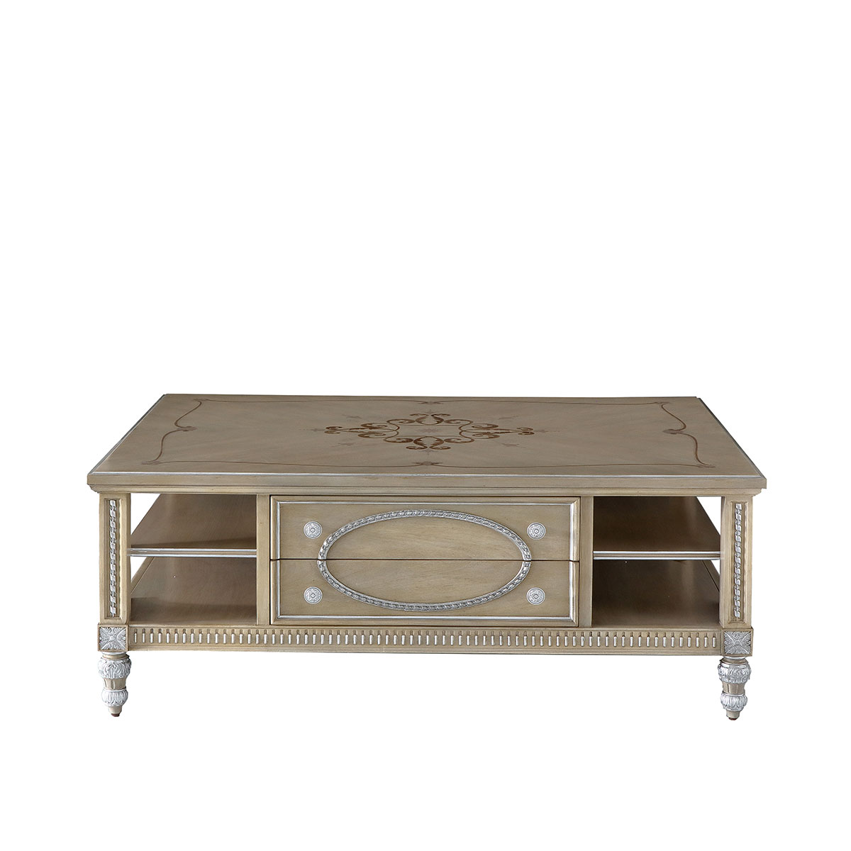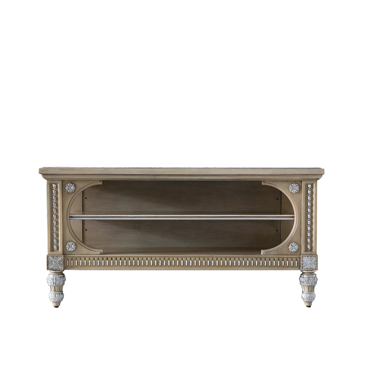 * 两个储物抽斗,其底部采用经典的硬木实木滑轨; * 左右两边为开放式设计,内部各有一块层板; * 脚底部装有可调脚钉;