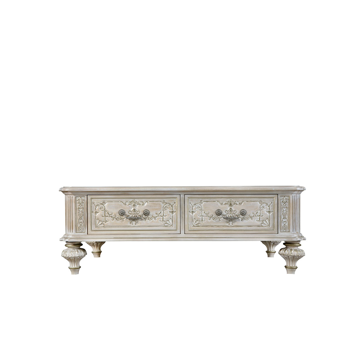 * 手工雕刻的花圃、藤蔓、阿坎瑟斯卷叶图案和弯脚设计; * 两个储物抽斗,并在其底部采用经典硬木实木滑轨设计; * 门内配有可调层板;门使用包边合页,使门更牢固; * 脚底部装有可调脚钉;