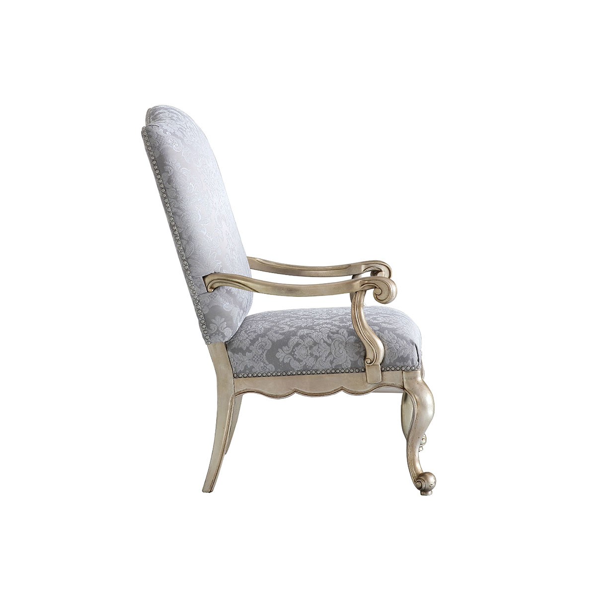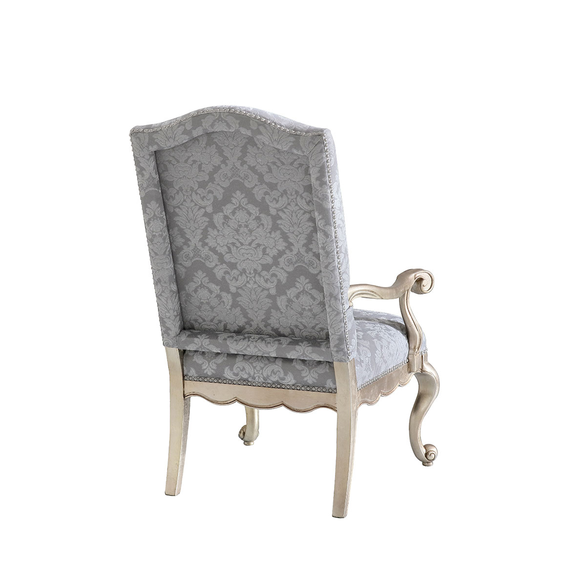 * 一款集合法式元素包括Camelback Silhouette(驼峰轮廓)造型、旋涡形扶手和S形弯脚的高背休闲椅,并配上触感舒适的布艺和包有丰厚的填充物坐垫和靠背;