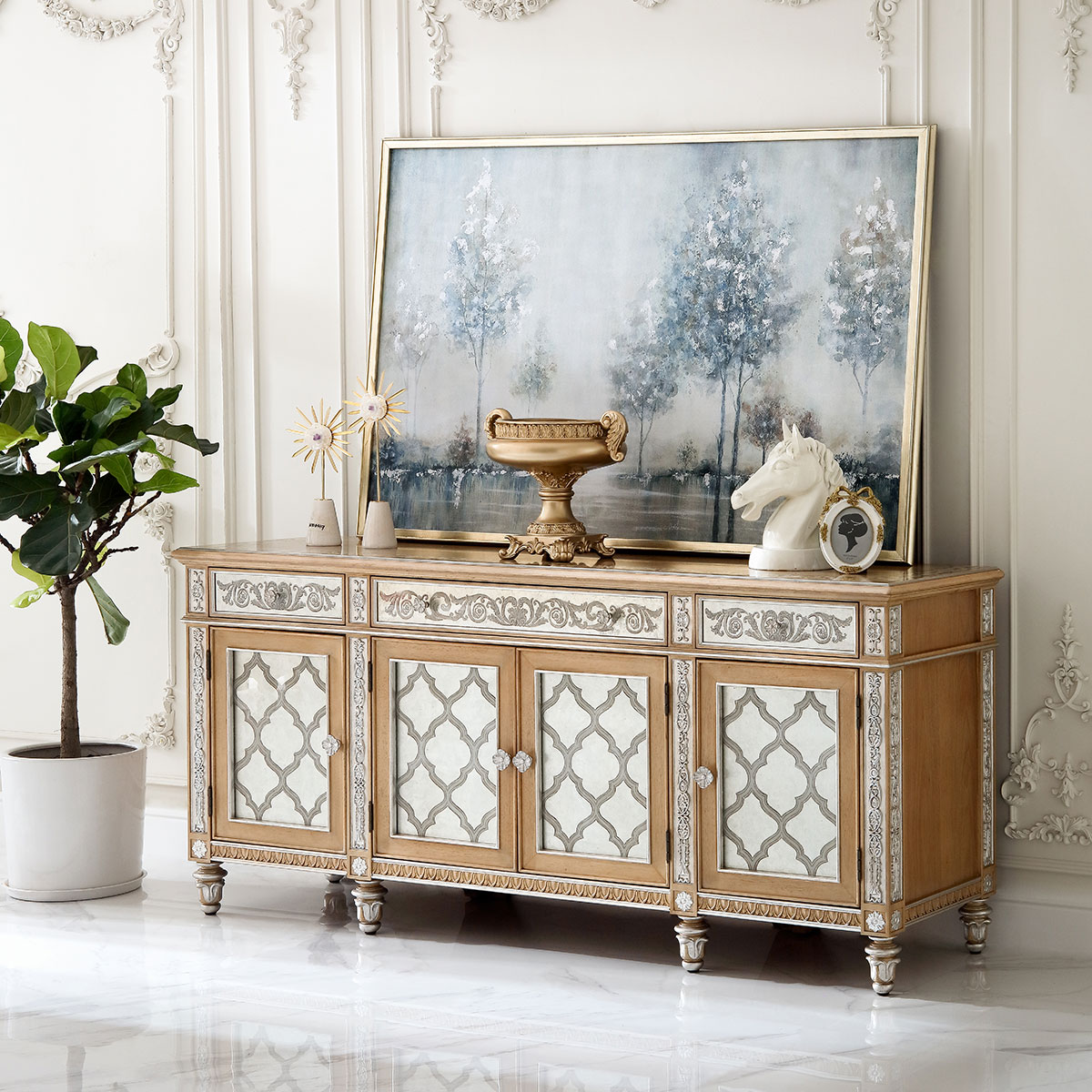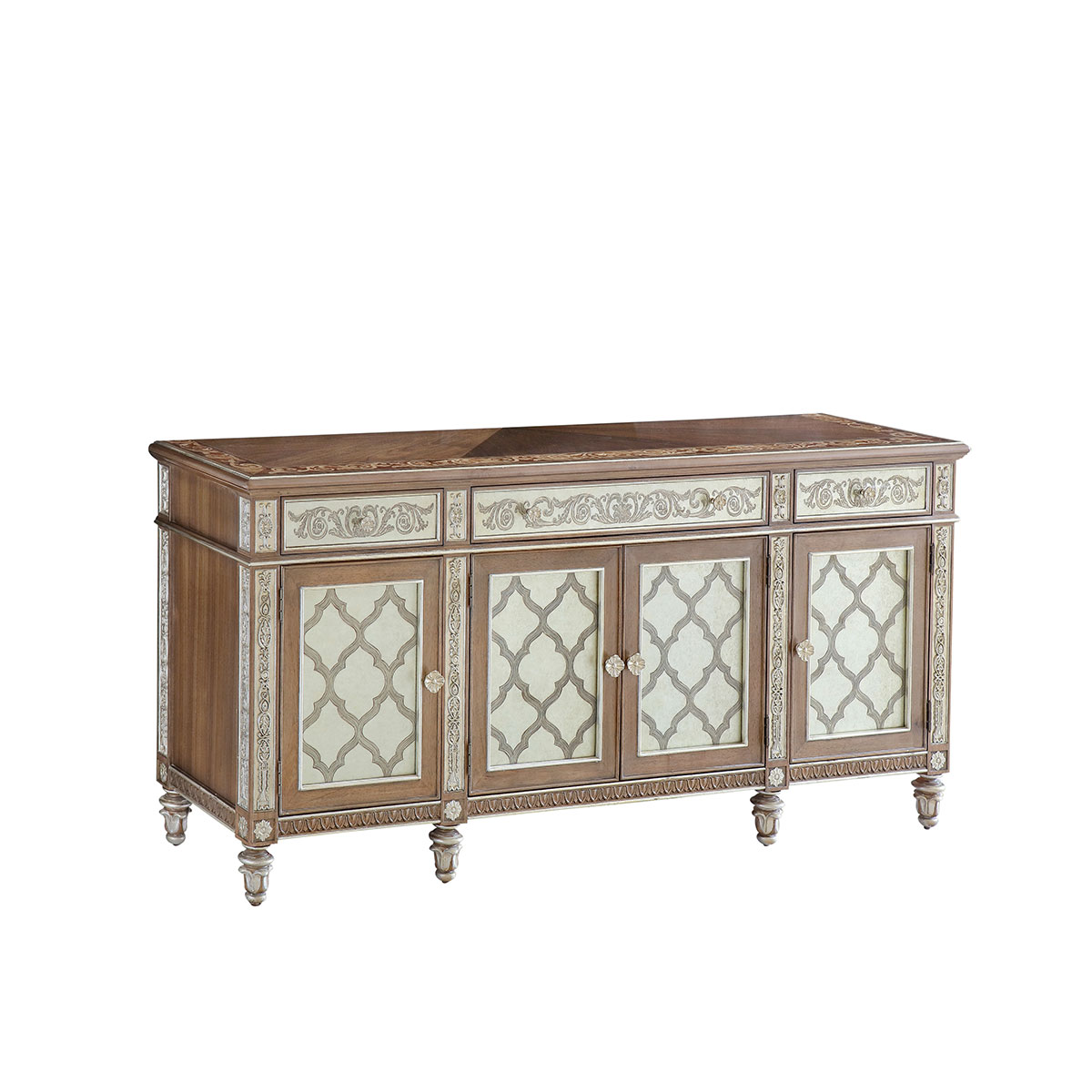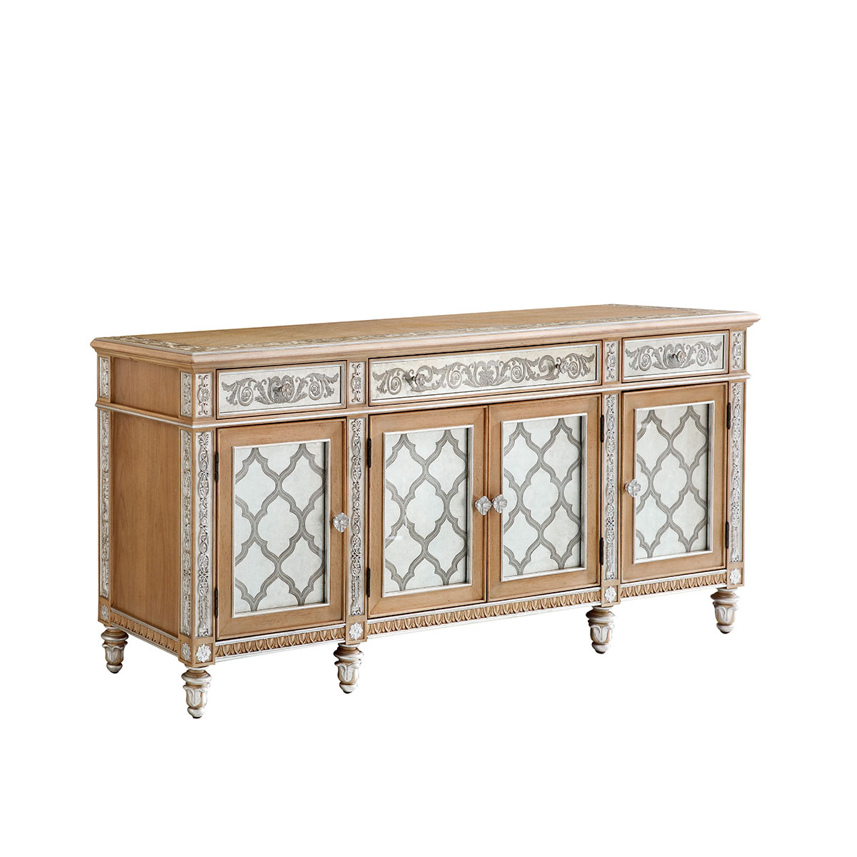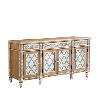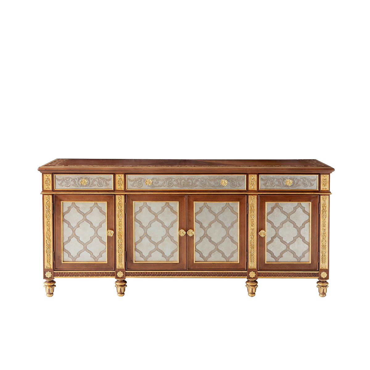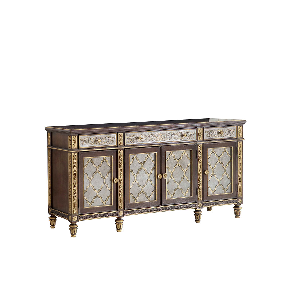橡胶木+环保人造板+黑胡桃+艳阳花+樱桃木等木皮贴面+艺术玻璃