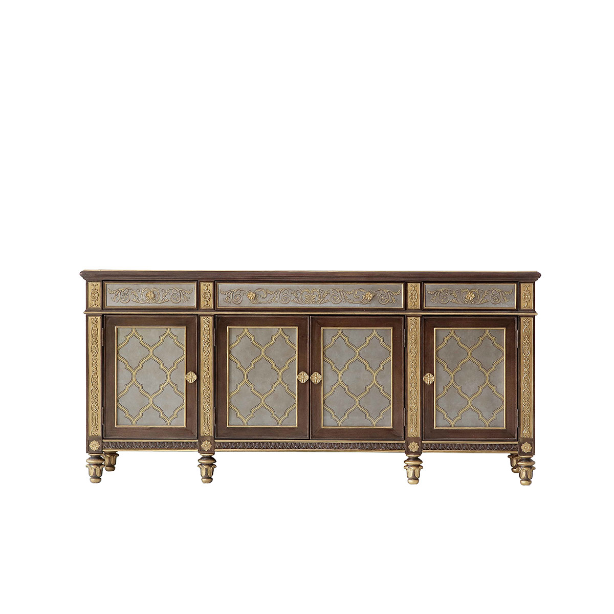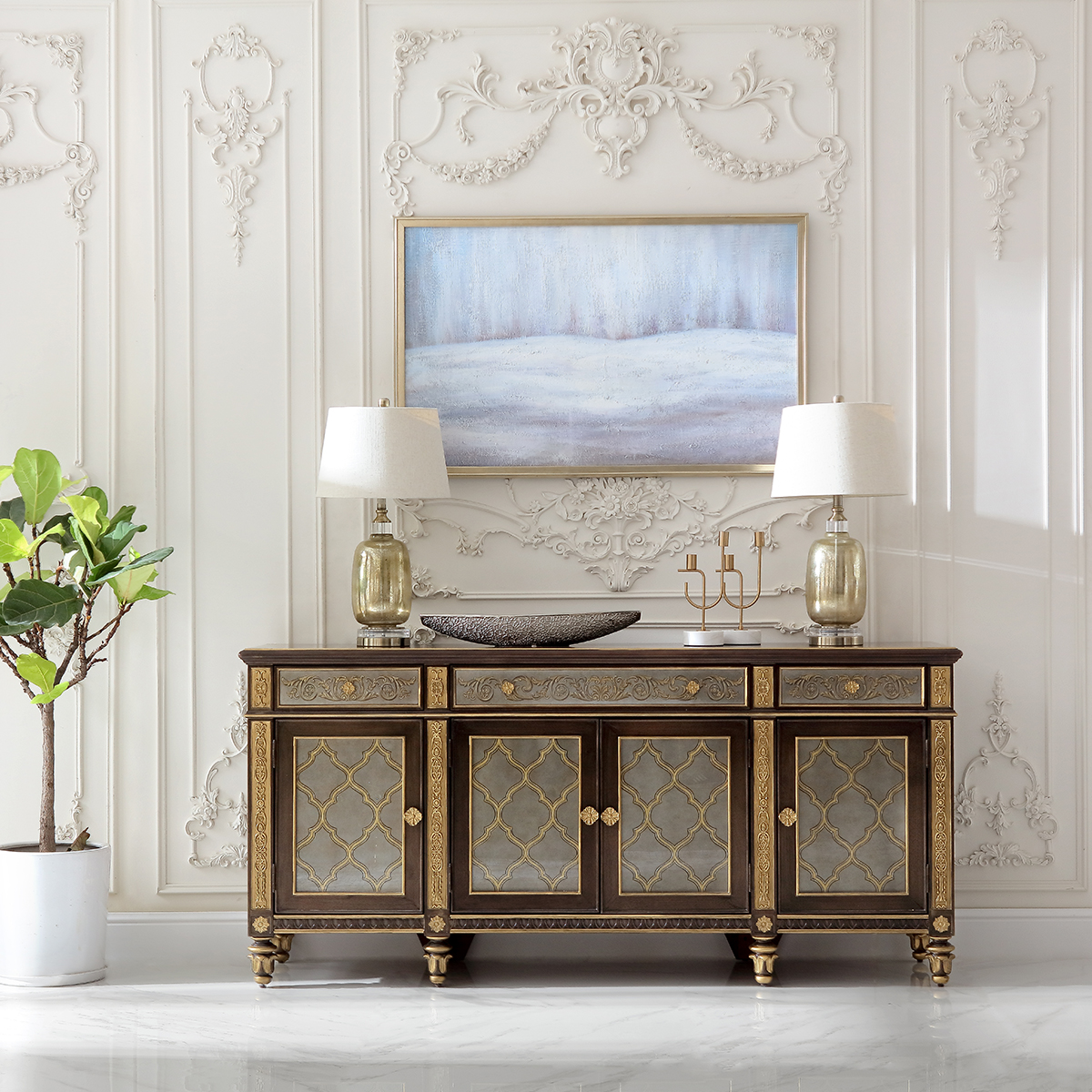 橡胶木+环保人造板+黑胡桃+艳阳花+樱桃木等木皮贴面+艺术玻璃