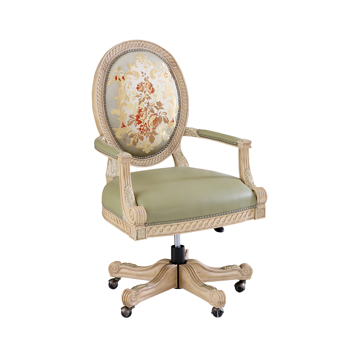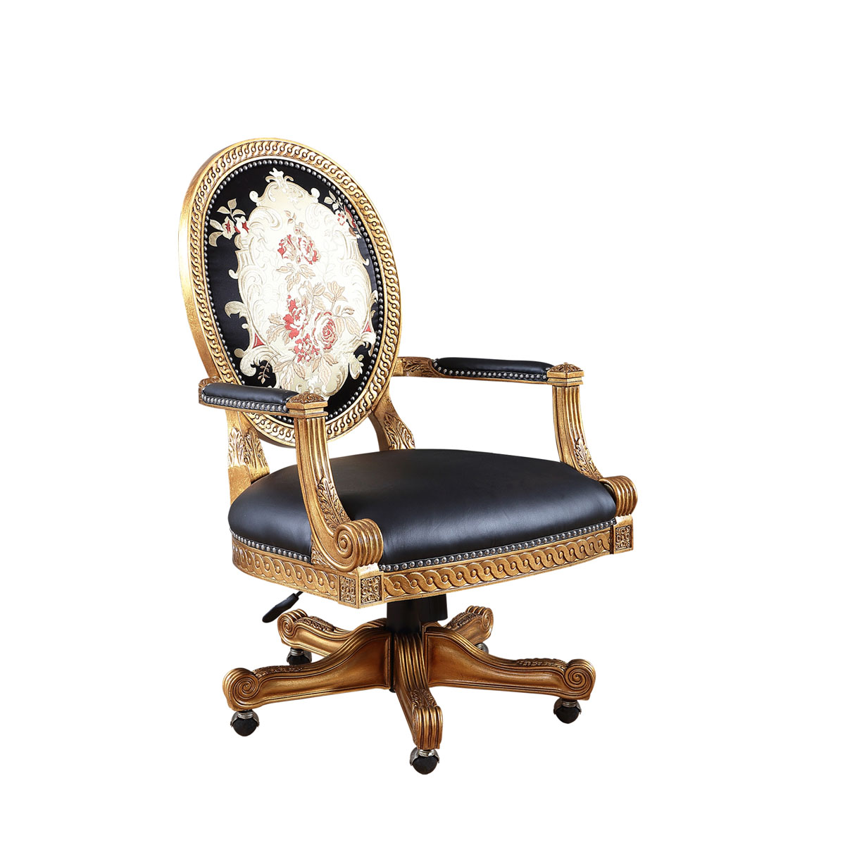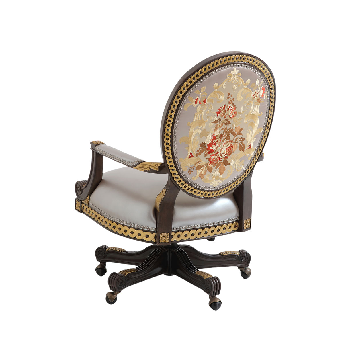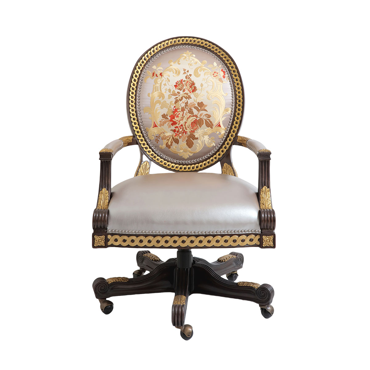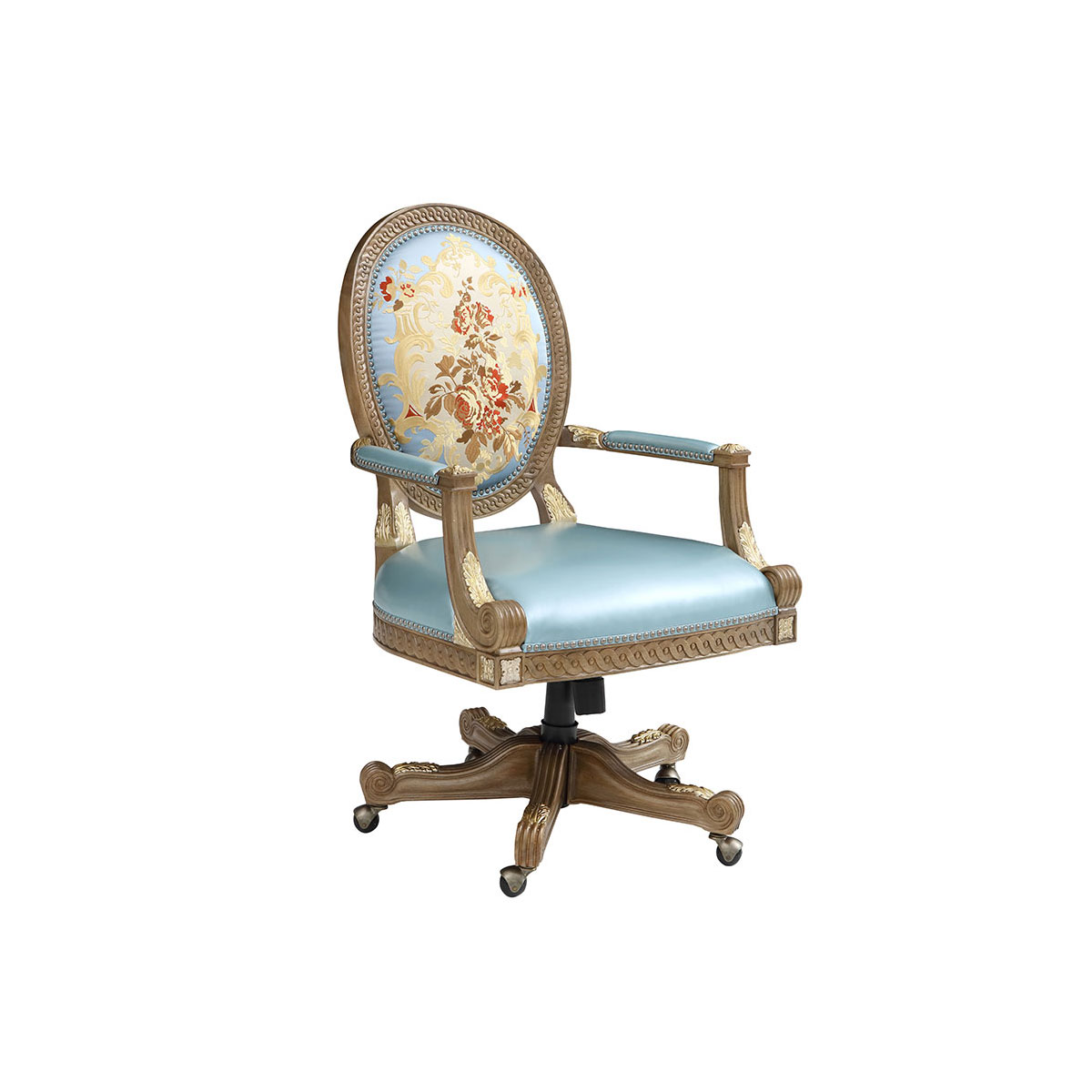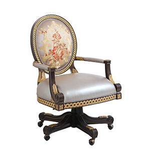 参考18世纪法国路易十六时期涂金扶手椅古董设计,并结合同时期的圆面背板设计。配上精致的连续雕刻和贴金铂工艺、锥形脚设计、触感舒适的布艺和包有丰厚的填充物坐垫和靠背。