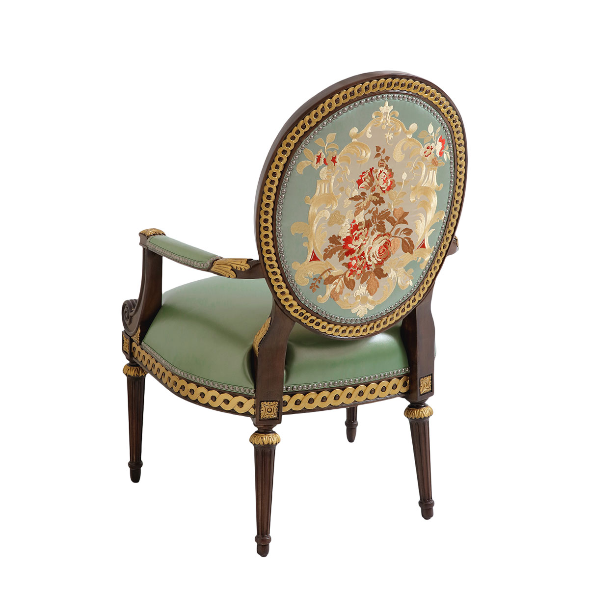 * 精细的手工雕刻配上仿金箔工艺结合十八道油漆工艺 * 坐垫和靠背包有丰厚的填充物; * 可拆装的软包座垫, * 提供多种面料可供选择